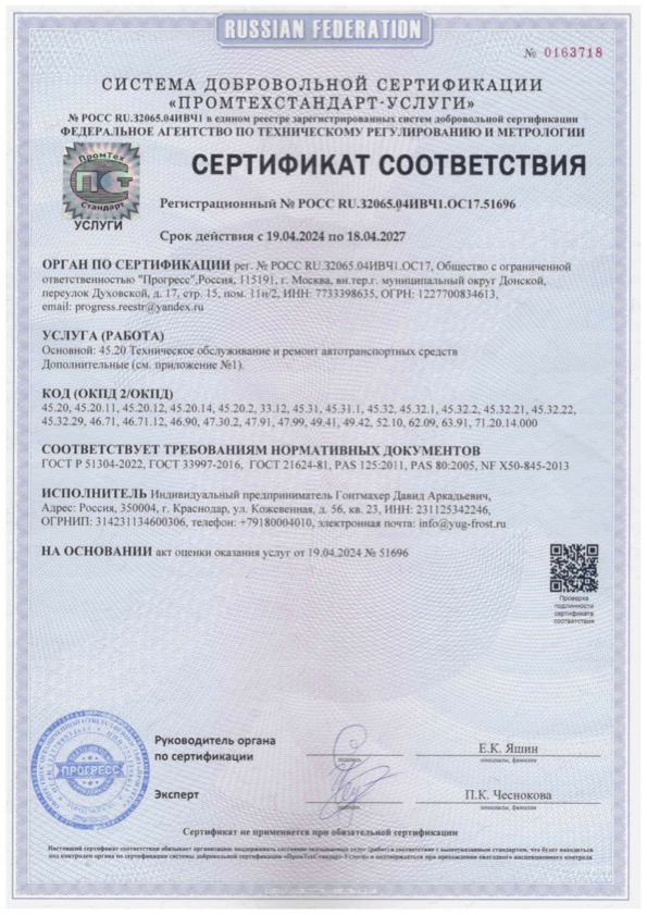 Компания «Юг Фрост» - признанный поставщик качественного оборудования и сервиса. Высокий уровень качества нашей продукции и предлагаемых услуг подтвержден многочисленными статусами и сертификатами.