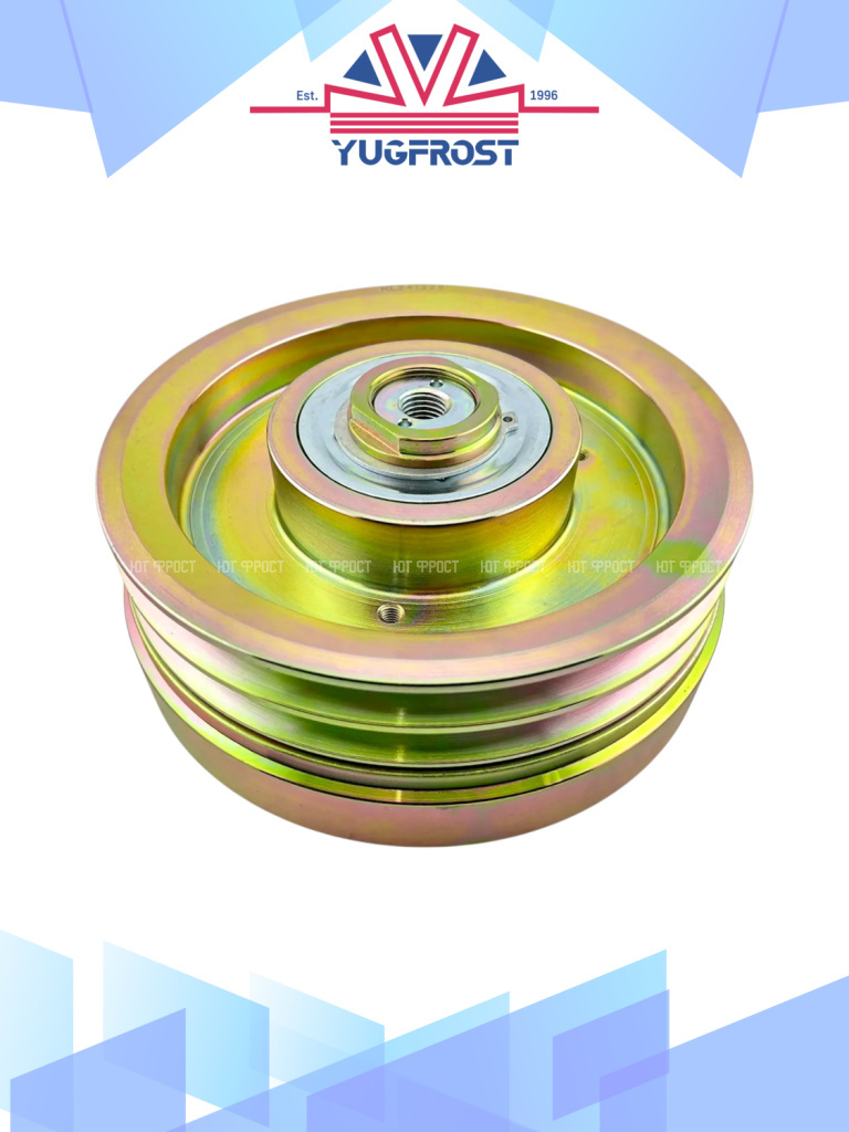 Сцепление связывает между собой двигатель и компрессор. В случае необходимости электромагнитная муфта передает крутящий момент на вал компрессора. Эта часть компрессора собрана из шкива, электромагнитной катушки и прижимающей пластинки.