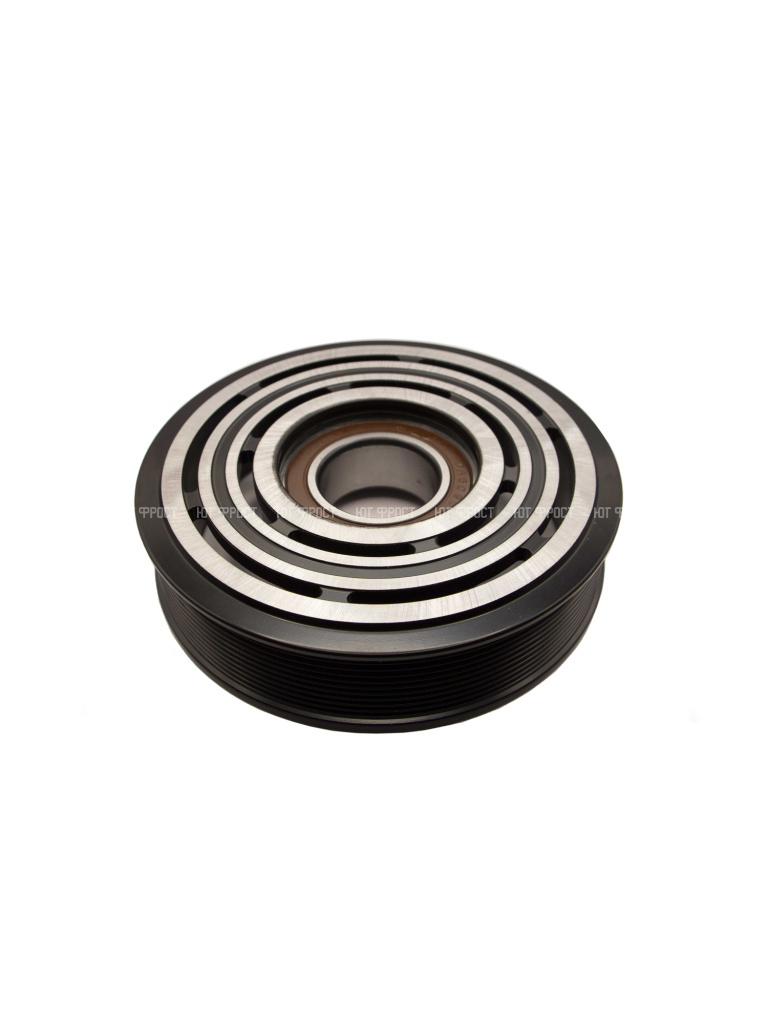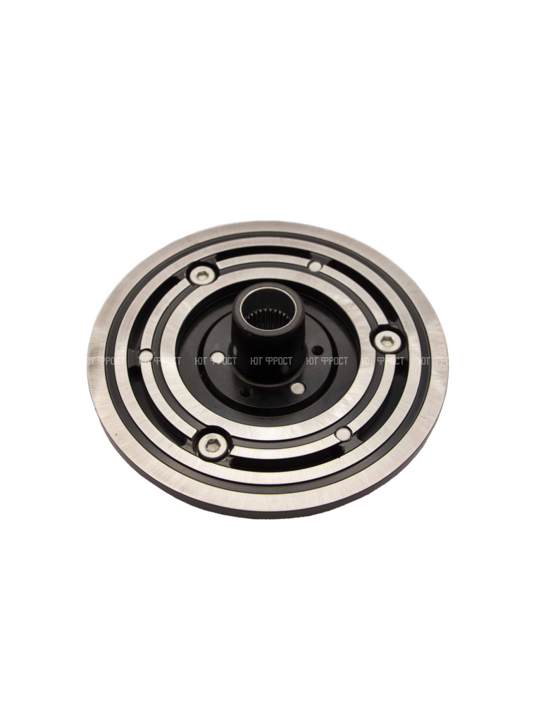 Муфта сцепление связывает между собой двигатель и компрессор. В случае необходимости электромагнитная муфта передает крутящий момент на вал компрессора. Эта часть компрессора собрана из шкива, электромагнитной катушки и прижимающей пластинки.