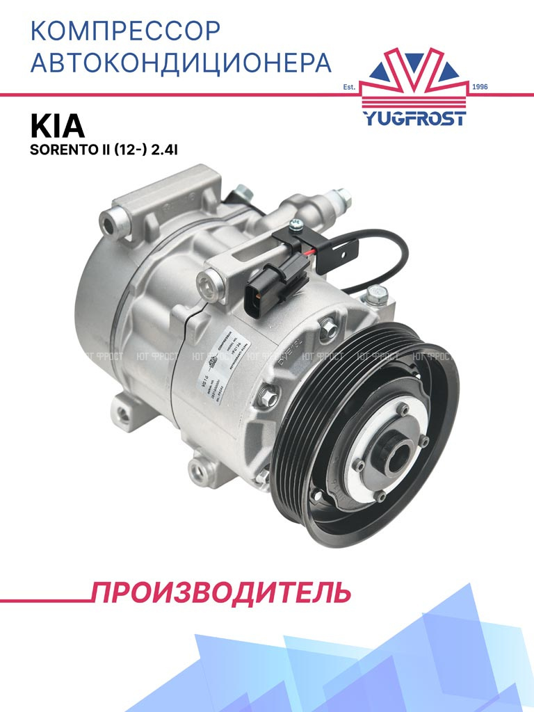 Компрессоры YUGFROST подходят для автомобилей Киа Соренто 2. Проверить совместимость по OEM номерам можно во вкладке Применяемость.