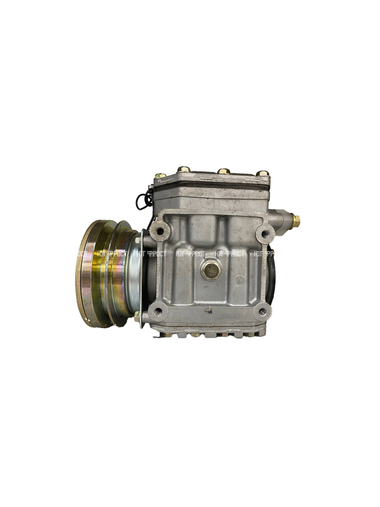 Компрессор кондиционера предназначен для сжимания хладагента системы кондиционирования и поддержания его движения по рабочему контуру. Сжатие хладагента необходимо для дальнейшего перехода хладагента в жидкое состояние; после которого происходит «испарение» («кипение») – переход хладагента в газообразное состояние – с поглощением тепла. Автомобильные компрессоры кондиционера относятся к разряду поршневых компрессоров; представляют собой кривошипно-шатунный механизм, включающий в себя металлические поршни с шатунами, вал с подшипниками, вращающийся наклонный диск (играющий роль кривошипа), блок цилиндров, размещенный в корпусе из алюминиевого сплава, соединенного болтами; на оси коленчатого вала размещена электромагнитная муфта, обеспечивающая передачу крутящего момента от приводного ремня. Смазка механизмов компрессора кондиционера закладывается на весь срок службы компрессора.