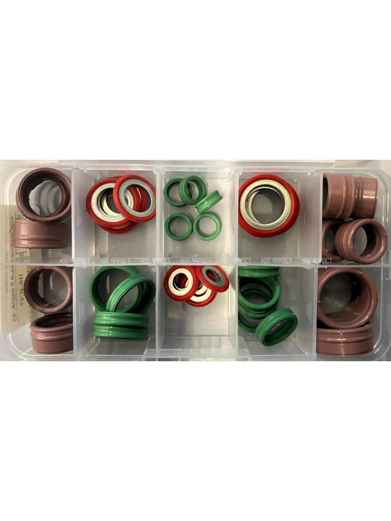 Комплект уплотнительных колец. Уплотнительные кольца для фитингов кондиционера применяются, чтобы исключить возможность утечки фреона в местах соединения магистралей и стыков с агрегатами. В процессе эксплуатации автомобильного кондиционера требуется применять особые фреоностойкие и маслостойкие кольца. При ремонте, системы кондиционера и рефрижератора рекомендуется использовать кольца зарубежных производителей, которые изготавливаются из особых стойких материалов. При ремонте автомобильного кондиционера и рефрижератора,рекомендуется располагать полным комплектом колец различных размеров и диаметров.