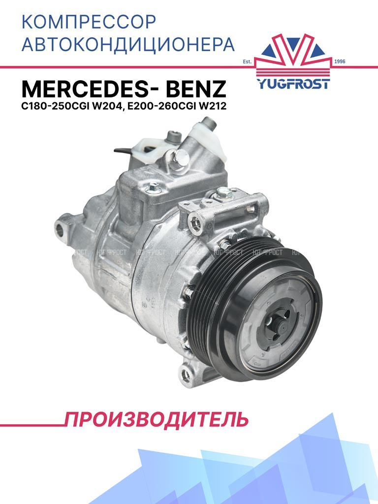 Компрессоры YUGFROST подходят для автомобилей Мерседес-бенц W204, Мерседес-бенц W212. Проверить совместимость по OEM номерам можно во вкладке Применяемость.
