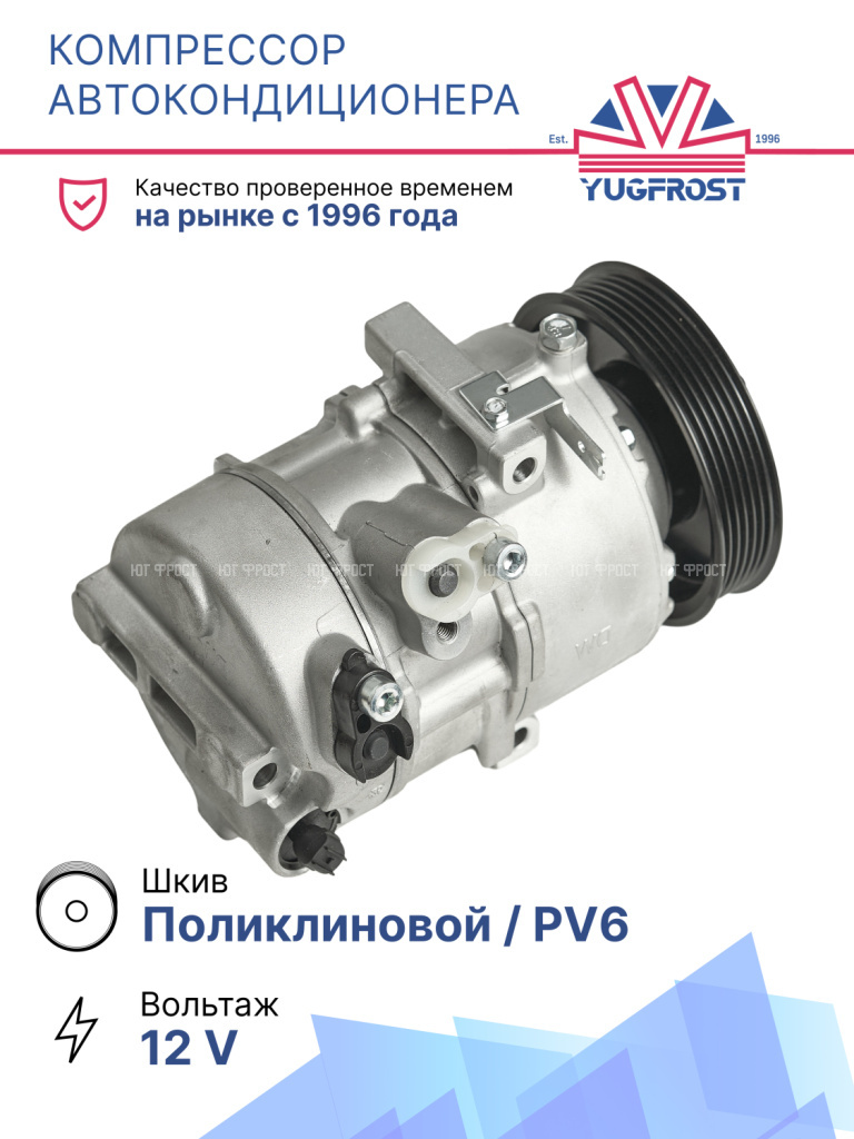 ЮгФрост предлагает компрессоры для автомобильных кондиционеров высокого качества, гарантирующее долговечность и надежность. Наш компрессор автокондиционера идеально подходит для Hyundai Creta. Мы предоставляем гарантийные обязательства на все компрессоры при выполнении условий установки и эксплуатации, описанные в разделе “Гарантия”.