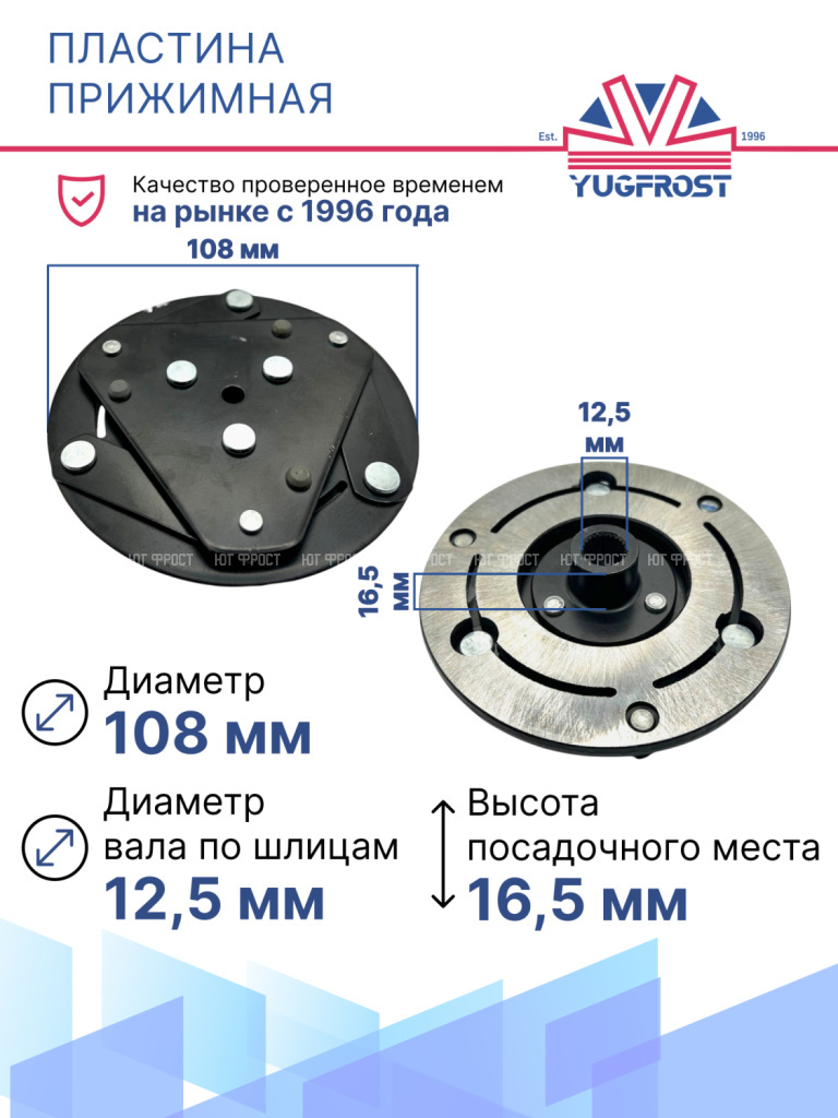 Прижимные пластины, также известные как пластины сцепления, располагаются в механизме электромагнитного сцепления компрессора. Обеспечивают эффективное соединение между шкивом и компрессором при включении сцепления. Признаки поломки проявляются в характерном шуме, запахе гари и исправляются путем замены пластины.