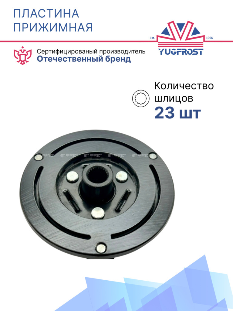 Прижимные пластины, также известные как пластины сцепления, располагаются в механизме электромагнитного сцепления компрессора. Обеспечивают эффективное соединение между шкивом и компрессором при включении сцепления. Признаки поломки проявляются в характерном шуме, запахе гари и исправляются путем замены пластины.