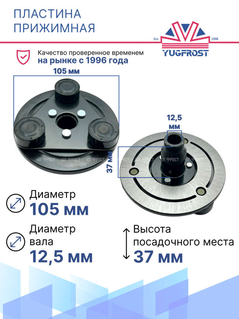 Прижимные пластины, также известные как пластины сцепления, располагаются в механизме электромагнитного сцепления компрессора. Обеспечивают эффективное соединение между шкивом и компрессором при включении сцепления. Признаки поломки проявляются в характерном шуме, запахе гари и исправляются путем замены пластины.