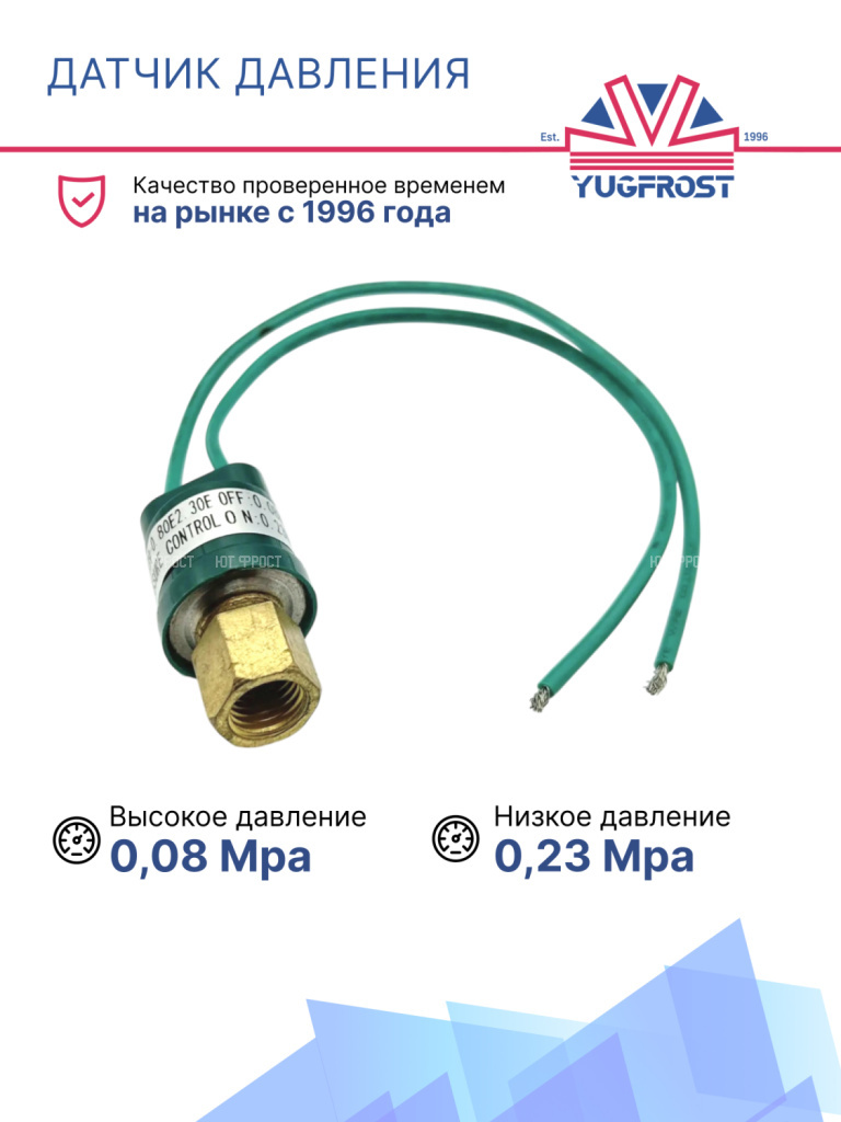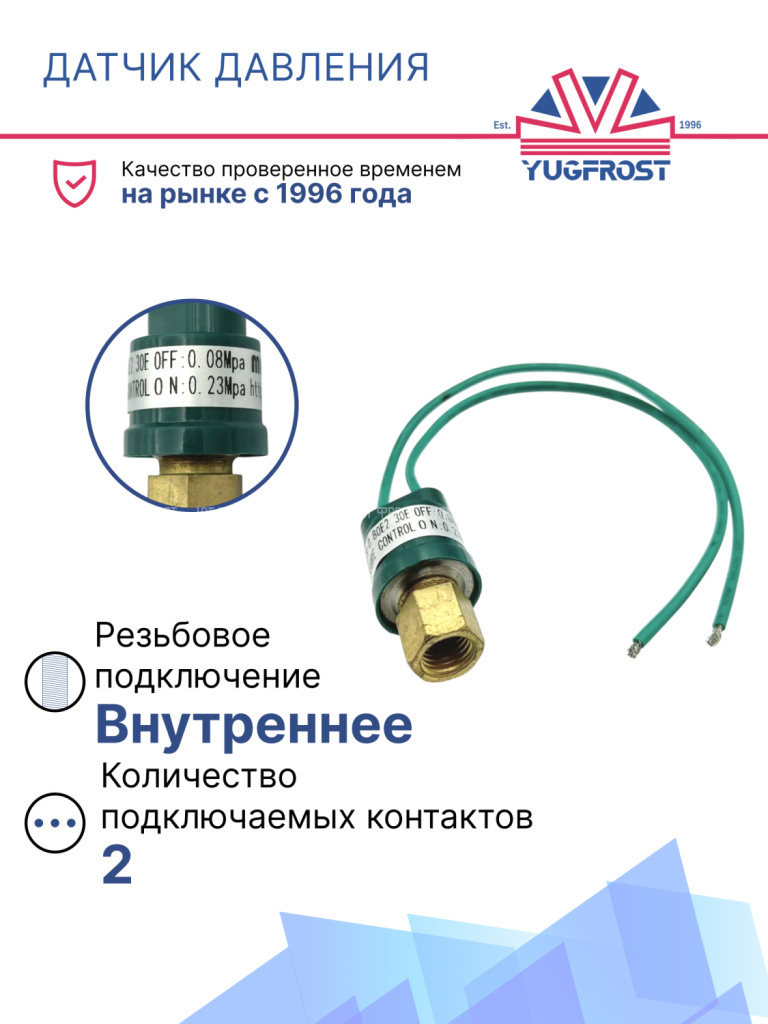 Датчик давления 2-х контактный ХОУ OFF: 0,08 Mpa ON: 0,23 Mpa (внут. резьба)