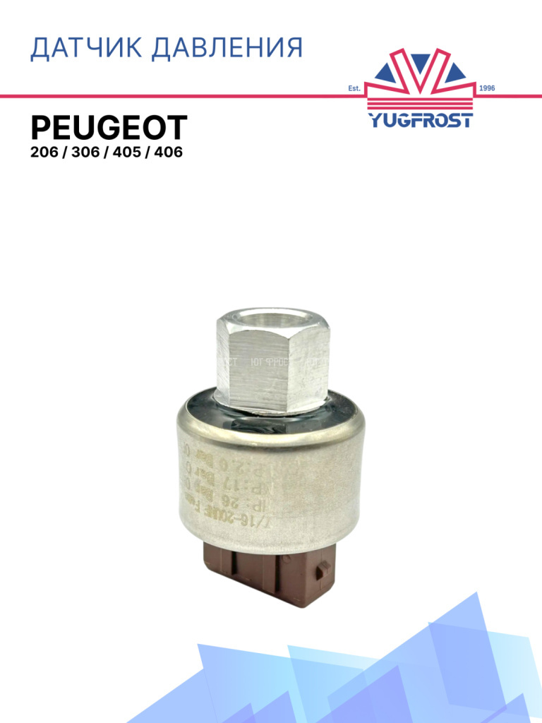 Датчик давления кондиционера для автомобилей Peugeot 206 / Peugeot 306 / Peugeot 405 / Peugeot 406 контролирует давление хладагента, размыкая цепь при выходе за пределы допустимого диапазона (нижний и верхний порог), что защищает систему от повреждений. Также датчик управляет работой вентилятора автокондиционера. Подходит для различных автомобилей Пежо 206 / Пежо 306 / Пежо 405 / Пежо 406, гарантируя надежную и безопасную работу автокондиционера. Удостовериться, что деталь подходит вашей машине, можно на нашем сайте во вкладке Применимость, сверив марку автомобиля или OEM-номер запчасти.