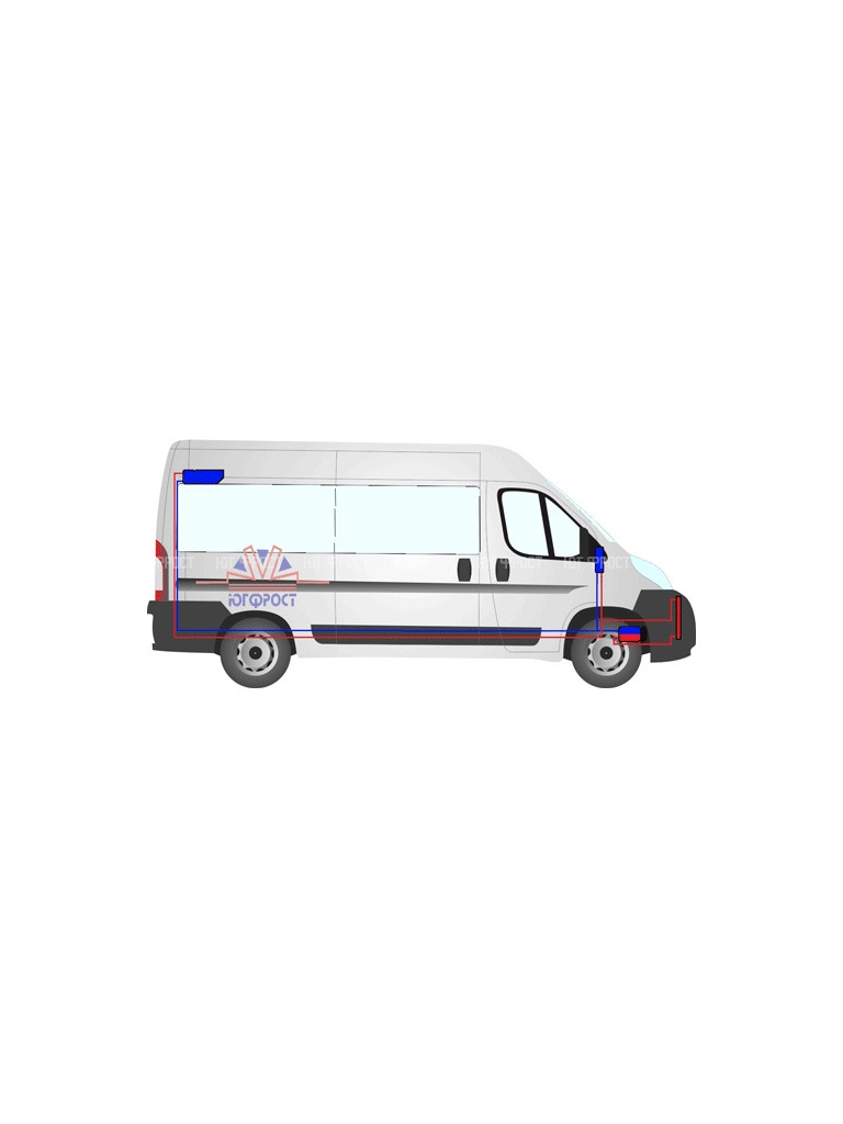 Испаритель подвесной 228-000 монтируется в салон автомобиля, в передней или задней части под потолком, второй испаритель UC5 монтируется в штатную систему отопления и вентиляции.