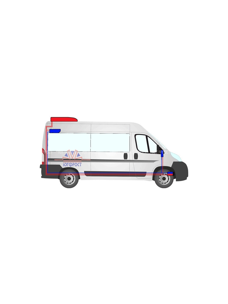 Испаритель подвесной 226-000 монтируется в салон автомобиля, в передней или задней части под потолком, второй испаритель UC5 монтируется в штатную систему отопления и вентиляции.