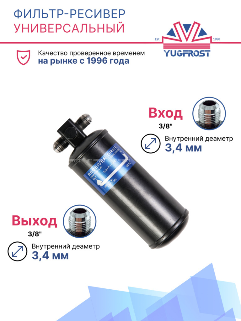 Ресивер – осушитель это элемент, который обеспечивает очистку, удаление влаги и накопление хладагента. Кроме того служит резервуаром для сбора хладагента, поступившего из конденсатора.Устанавливается на линии высокого давления, между выпускным патрубком конденсатора и впускным патрубком терморегулирующего вентиля.