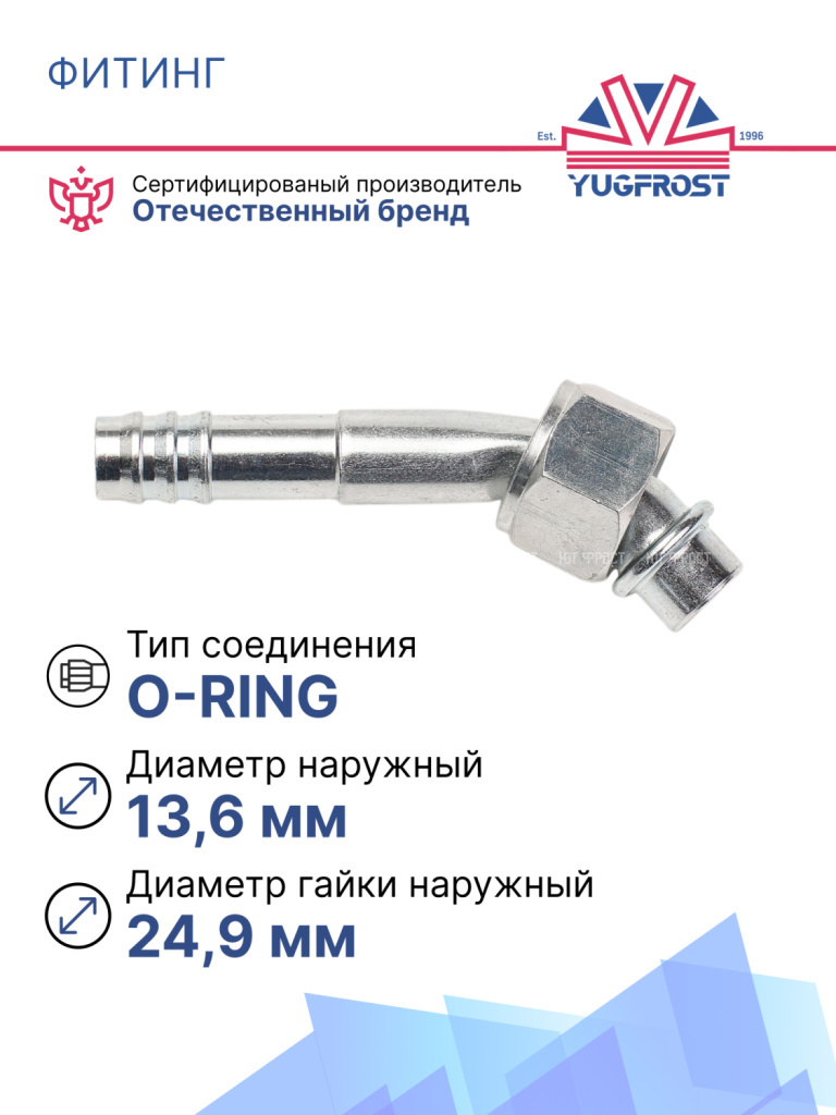 Фитинг O-Ring 13 мм (G10) с гайкой (внутренняя резьба) изогнутый под 45° используется в ремонте магистралей системы кондиционирования практически во всех типах легковых и грузовых автомобилей. Применяется для автокондиционирования и рефрижераторных установок.