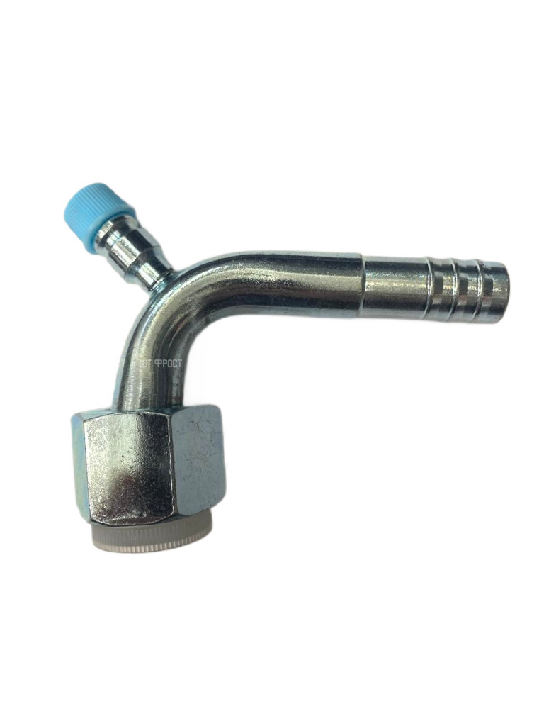 Фитинг O-Ring 16 мм (G12) с гайкой (внутренняя резьба) изогнутый под 90°, с заправочным портом, используется для заправки фреоном автомобильного кондиционера в контур низкого (L) давления. Применяется для автокондиционирования и рефрижераторных установок.