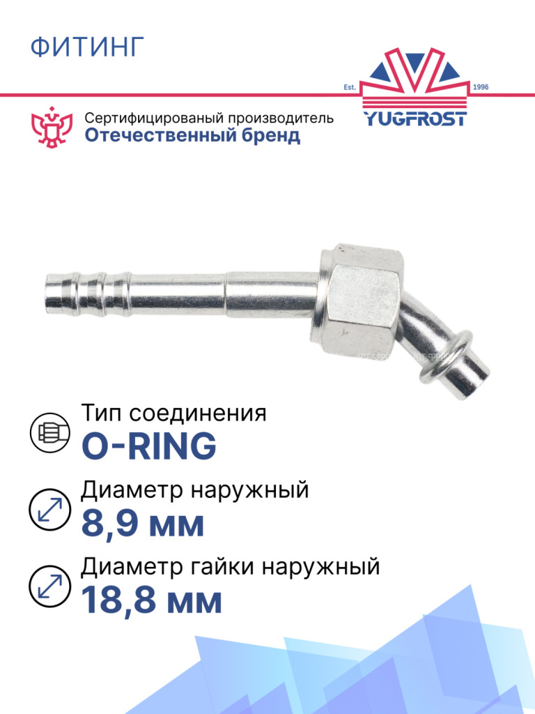 Фитинг O-Ring 8 мм (G6) с гайкой (внутренняя резьба) изогнутый под 45° используется в ремонте магистралей хладагента практически во всех типах легковых и грузовых автомобилей. Применяется для автокондиционирования и рефрижераторных установок.