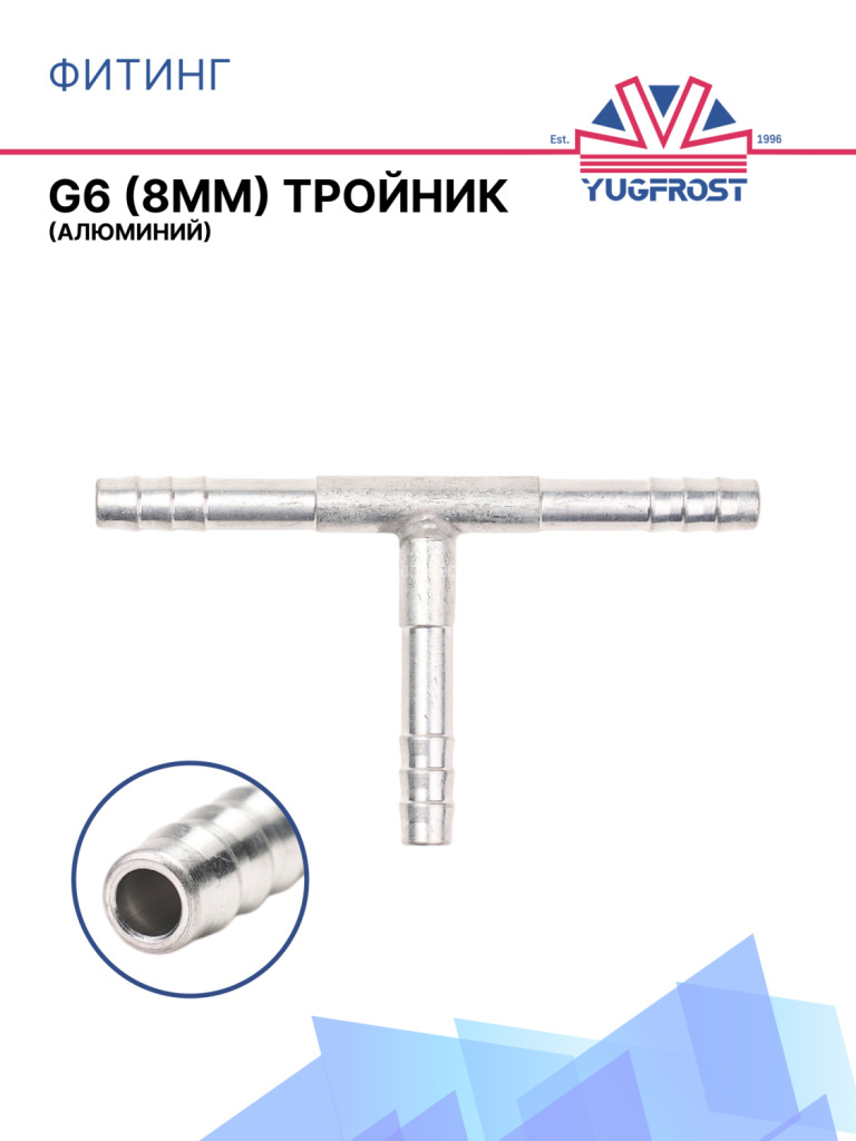 Фитинг G6 (8мм) тройник Т-образный (Ерш). Применяется для автокондиционирования и рефрижераторных установок.