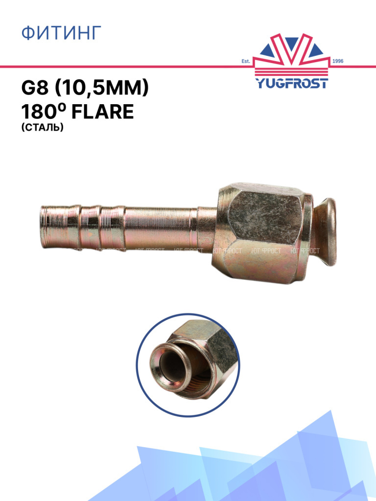 Фитинг G8 (10,5мм) 180⁰ FLARE (сталь)