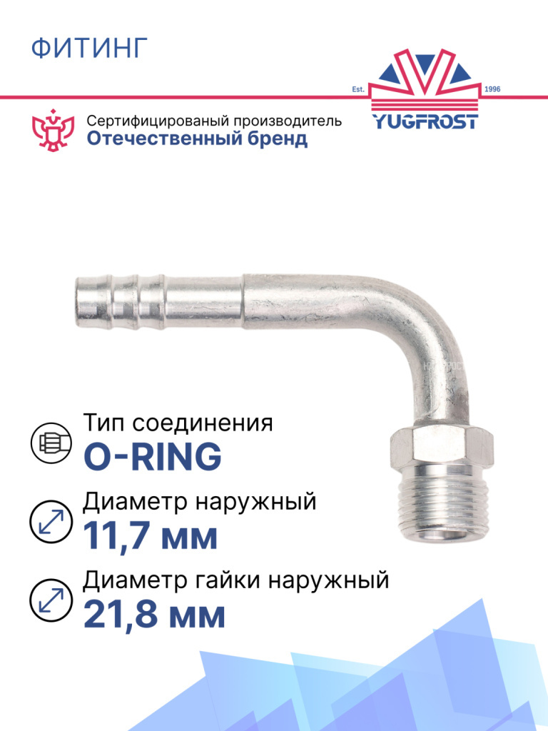 Фитинг O-Ring 10,5 мм (G8), наружняя резьба, изогнутый под 90° используется в ремонте магистралей хладагента практически во всех типах легковых и грузовых автомобилей. Применяется для автокондиционирования и рефрижераторных установок.