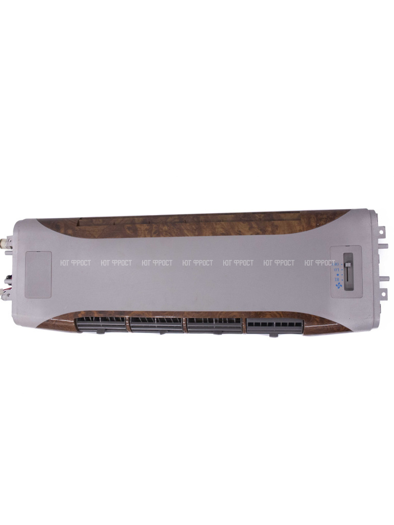 Испаритель, питание 12V. 4 воздуховода, расположенных в ряд, регулируются по вертикали в диапазоне 90°, по горизонтали в диапазоне 180°. Управление регулировки скорости вентилятора вынесено на отдельный пульт. Аналог