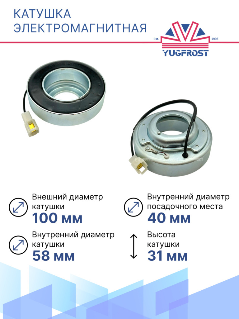 Катушка электромагнитная для кондиционера Mazda 2 – отвечает за включение и выключение компрессора кондиционера. Катушка обеспечивает срабатывание муфты компрессора при подаче электрического сигнала.
