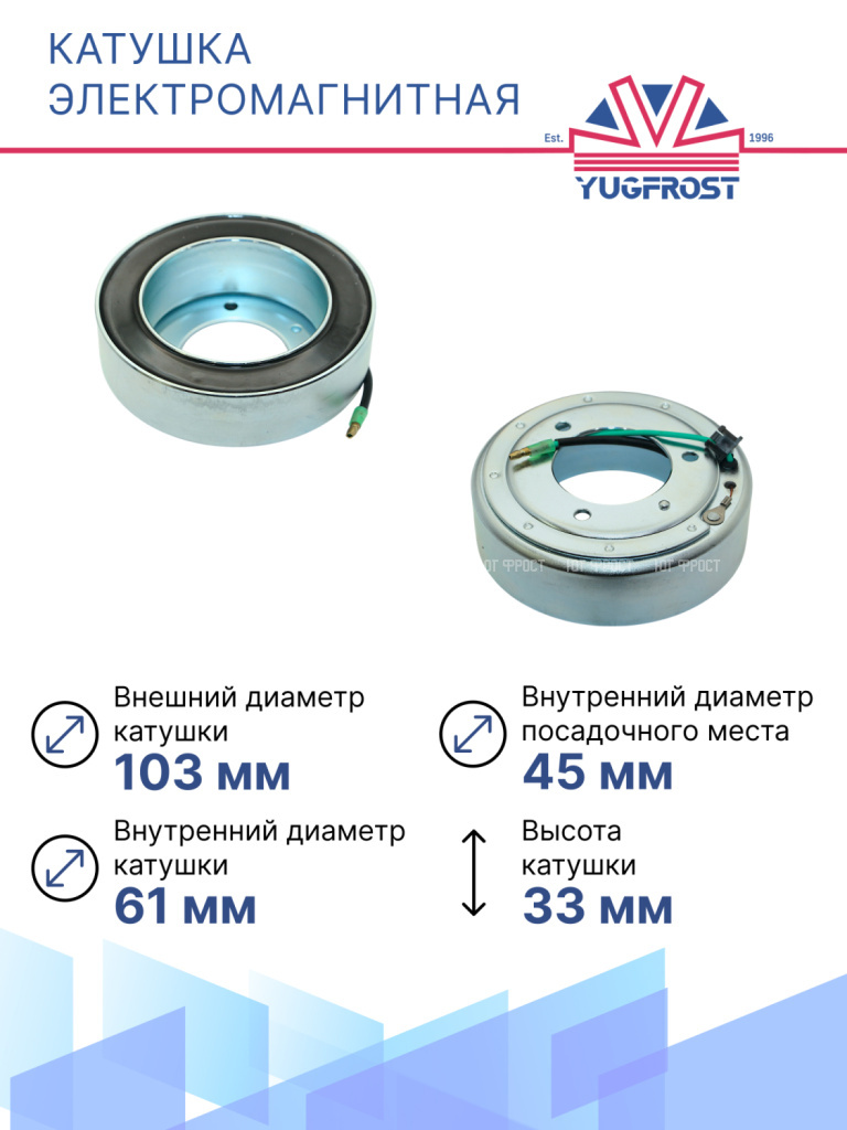 Электромагнитная катушка шкива / муфты компрессора кондиционера — это навесное оборудование компрессора автокондиционера, которое при включении кондиционера (подачи питания) создает электромагнитное поле, тем самым притягивает прижимную пластину и запускает компрессор автомобильного кондиционера.