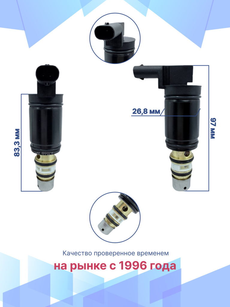 Данная запчасть не имеет OEM номера, поэтому подбирается по образцу или внешнему виду, а так же по фото и размерам клапана. Не рекомендуется проверять клапан напряжением 12В от бортовой сети автомобиля, так как это может привести к полной потере работоспособности клапана по причине замыкания.