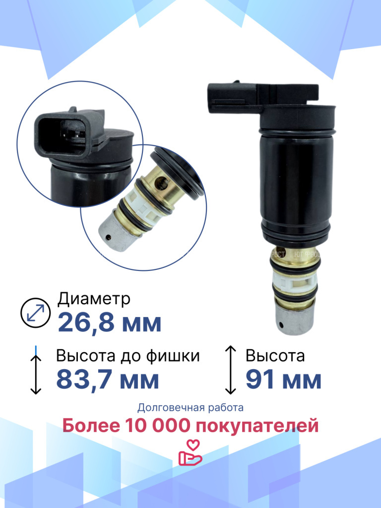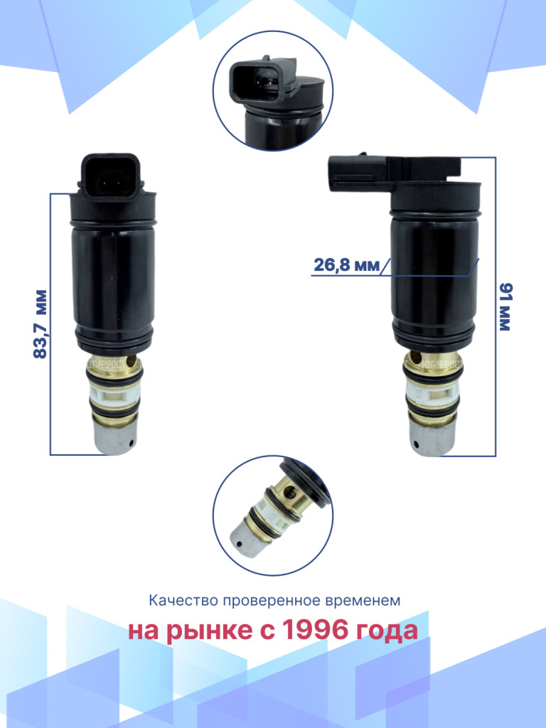 Данная запчасть не имеет OEM номера, поэтому подбирается по образцу или внешнему виду, а так же по фото и размерам клапана. Не рекомендуется проверять клапан напряжением 12В от бортовой сети автомобиля, так как это может привести к полной потере работоспособности клапана по причине замыкания.