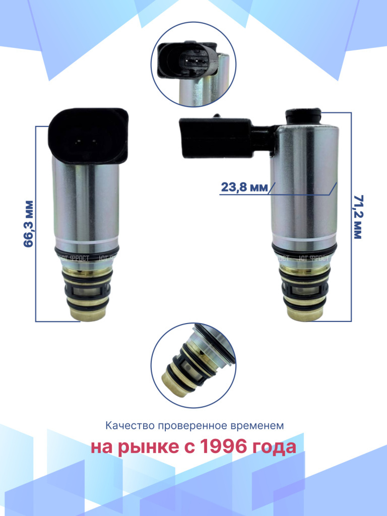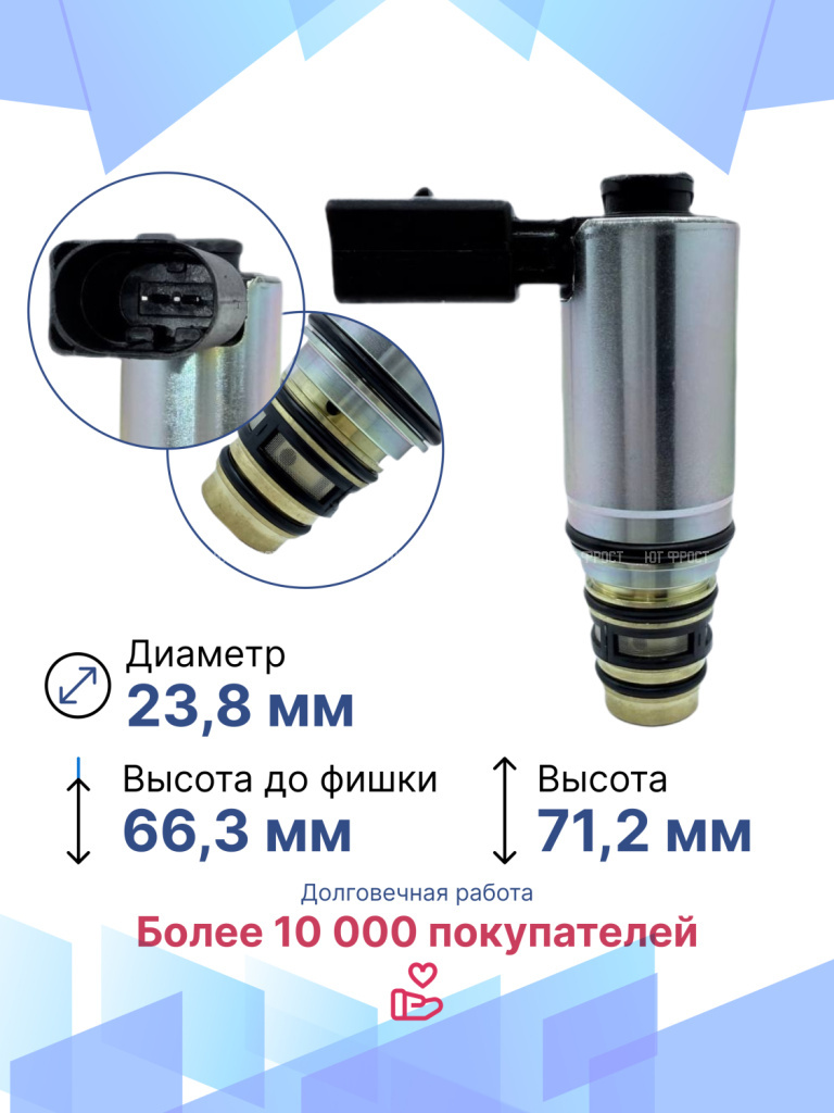 Электромагнитный клапан для Audi A3, Seat, Skoda, Volkswagen – важный элемент системы климат-контроля автомобиля, который в большинстве автомобилей современного производства устанавливается вместо электромагнитной муфты. Управляющий клапан кондиционера служит для включения и выключения компрессора. Электромагнитный клапан подходит для различных модификаций Ауди A3, Сеат, Шкода, Фольксваген, гарантируя точную совместимость и надежность. Данная запчасть не имеет OEM номера, поэтому подбирается по образцу или внешнему виду, а также по фото и размерам клапана. Электромагнитный управляющий клапан компрессора автомобиля возврату и обмену не подлежит, т.к. является высокотехнологичным изделием и электрооборудованием, которое в случае установки теряет товарный вид. Перед отправкой мы тестируем каждый клапан, гарантируем его полную работоспособность. Остались вопросы? Свяжитесь с нами!