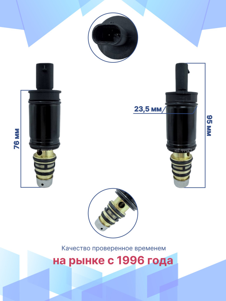 Электромагнитный клапан для BMW, Fiat, Jeep, Chrysler – важный элемент системы климат-контроля автомобиля, который в большинстве автомобилей современного производства устанавливается вместо электромагнитной муфты. Управляющий клапан кондиционера служит для включения и выключения компрессора. Электромагнитный клапан подходит для различных модификаций БМВ, Фиат, Джип, Крайслер, гарантируя точную совместимость и надежность. Данная запчасть не имеет OEM номера, поэтому подбирается по образцу или внешнему виду, а также по фото и размерам клапана. Электромагнитный управляющий клапан компрессора автомобиля возврату и обмену не подлежит, т.к. является высокотехнологичным изделием и электрооборудованием, которое в случае установки теряет товарный вид. Перед отправкой мы тестируем каждый клапан, гарантируем его полную работоспособность. Остались вопросы? Свяжитесь с нами!