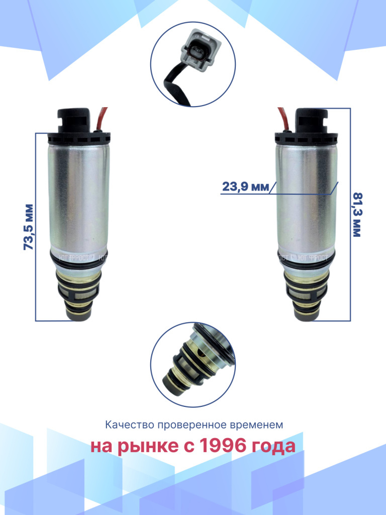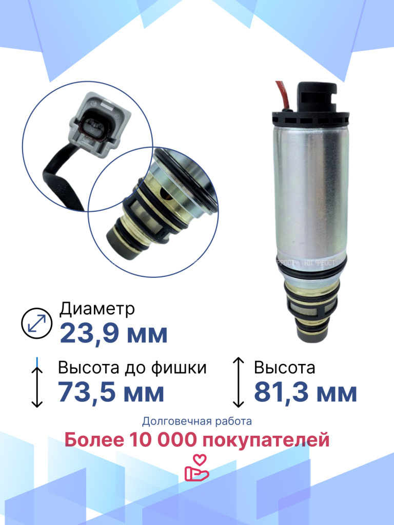 Электромагнитный клапан для Hyundai, Nissan, Renault – важный элемент системы климат-контроля автомобиля, который в большинстве автомобилей современного производства устанавливается вместо электромагнитной муфты. Управляющий клапан кондиционера служит для включения и выключения компрессора. Электромагнитный клапан подходит для различных модификаций Хендай, Ниссан, Рено, гарантируя точную совместимость и надежность. Данная запчасть не имеет OEM номера, поэтому подбирается по образцу или внешнему виду, а также по фото и размерам клапана. Электромагнитный управляющий клапан компрессора автомобиля возврату и обмену не подлежит, т.к. является высокотехнологичным изделием и электрооборудованием, которое в случае установки теряет товарный вид. Перед отправкой мы тестируем каждый клапан, гарантируем его полную работоспособность. Остались вопросы? Свяжитесь с нами!