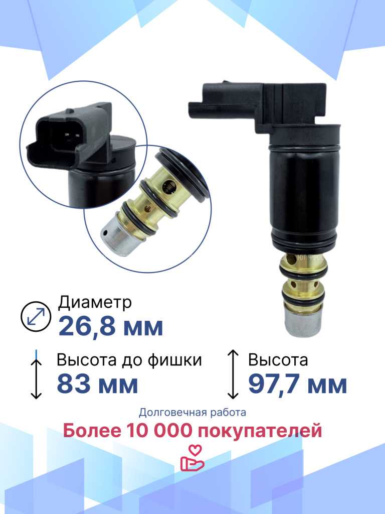 Электромагнитный клапан для Peugeot, Citroën – важный элемент системы климат-контроля автомобиля, который в большинстве автомобилей современного производства устанавливается вместо электромагнитной муфты. Управляющий клапан кондиционера служит для включения и выключения компрессора. Электромагнитный клапан подходит для различных модификаций Пежо, Ситроен, гарантируя точную совместимость и надежность. Данная запчасть не имеет OEM номера, поэтому подбирается по образцу или внешнему виду, а также по фото и размерам клапана. Электромагнитный управляющий клапан компрессора автомобиля возврату и обмену не подлежит, т.к. является высокотехнологичным изделием и электрооборудованием, которое в случае установки теряет товарный вид. Перед отправкой мы тестируем каждый клапан, гарантируем его полную работоспособность. Остались вопросы? Свяжитесь с нами!
