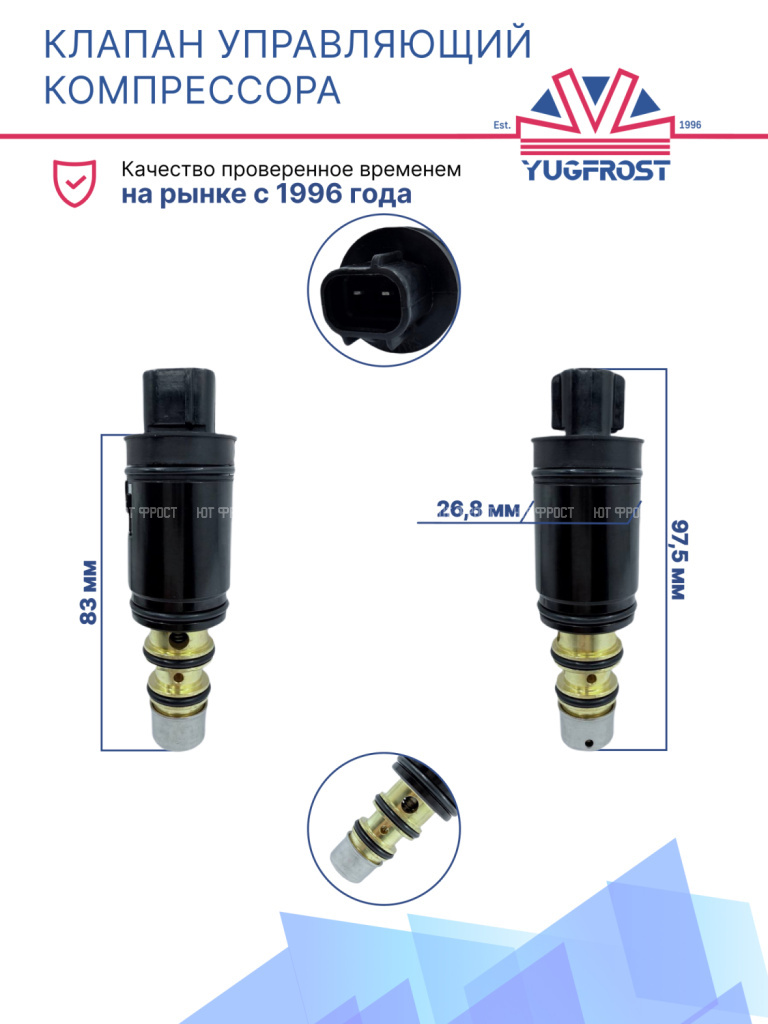 Электромагнитный клапан для Toyota, Buick Park Avenue – важный элемент системы климат-контроля автомобиля, который в большинстве автомобилей современного производства устанавливается вместо электромагнитной муфты. Управляющий клапан кондиционера служит для включения и выключения компрессора. Электромагнитный клапан подходит для различных модификаций Тойота, Бьюик Парк Авеню, гарантируя точную совместимость и надежность. Данная запчасть не имеет OEM номера, поэтому подбирается по образцу или внешнему виду, а также по фото и размерам клапана. Электромагнитный управляющий клапан компрессора автомобиля возврату и обмену не подлежит, т.к. является высокотехнологичным изделием и электрооборудованием, которое в случае установки теряет товарный вид. Перед отправкой мы тестируем каждый клапан, гарантируем его полную работоспособность. Остались вопросы? Свяжитесь с нами!