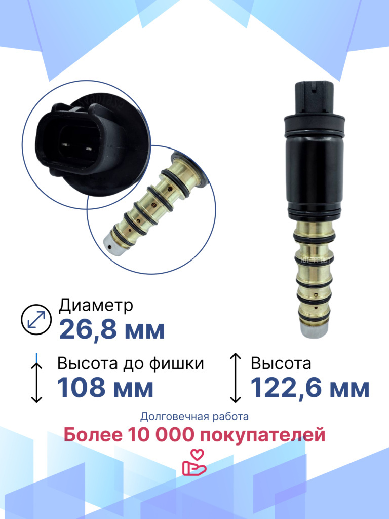Электромагнитный клапан для Toyota Camry, Toyota Corolla – важный элемент системы климат-контроля автомобиля, который в большинстве автомобилей современного производства устанавливается вместо электромагнитной муфты. Управляющий клапан кондиционера служит для включения и выключения компрессора. Электромагнитный клапан подходит для различных модификаций Тойота Камри, Тойота Королла, гарантируя точную совместимость и надежность. Данная запчасть не имеет OEM номера, поэтому подбирается по образцу или внешнему виду, а также по фото и размерам клапана. Электромагнитный управляющий клапан компрессора автомобиля возврату и обмену не подлежит, т.к. является высокотехнологичным изделием и электрооборудованием, которое в случае установки теряет товарный вид. Перед отправкой мы тестируем каждый клапан, гарантируем его полную работоспособность. Остались вопросы? Свяжитесь с нами!