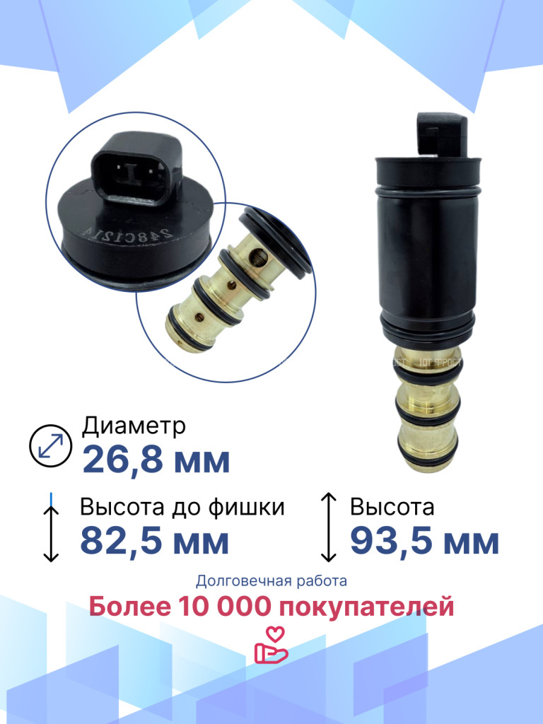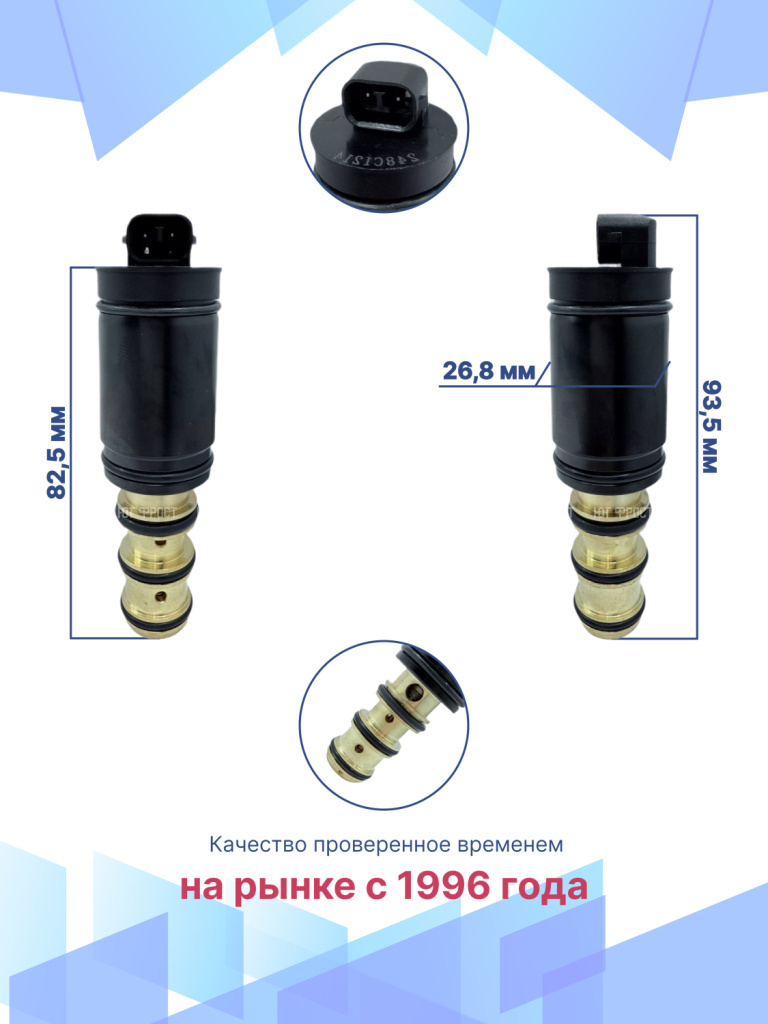 Данная запчасть не имеет OEM номера, поэтому подбирается по образцу или внешнему виду, а так же по фото и размерам клапана. Не рекомендуется проверять клапан напряжением 12В от бортовой сети автомобиля, так как это может привести к полной потере работоспособности клапана по причине замыкания.