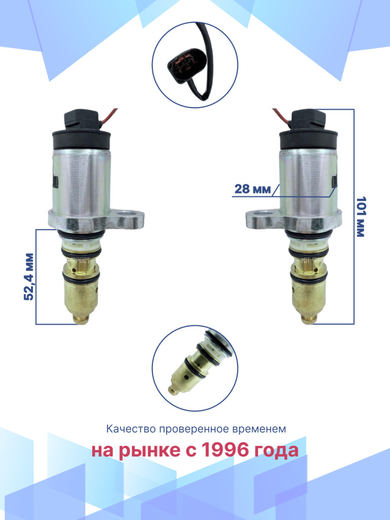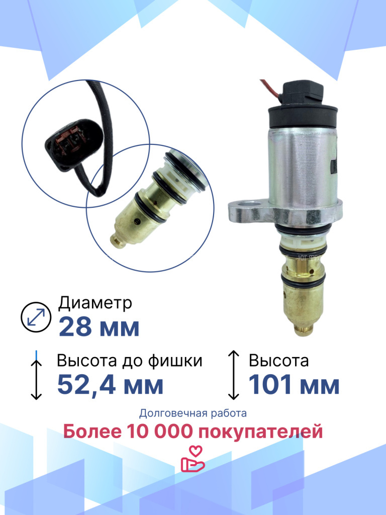 Электромагнитный клапан для Volkswagen, Audi, Seat – важный элемент системы климат-контроля автомобиля, который в большинстве автомобилей современного производства устанавливается вместо электромагнитной муфты. Управляющий клапан кондиционера служит для включения и выключения компрессора. Электромагнитный клапан подходит для различных модификаций Фольксваген, Ауди, Сеат, гарантируя точную совместимость и надежность. Данная запчасть не имеет OEM номера, поэтому подбирается по образцу или внешнему виду, а также по фото и размерам клапана. Электромагнитный управляющий клапан компрессора автомобиля возврату и обмену не подлежит, так как является высокотехнологичным изделием и электрооборудованием, которое в случае установки теряет товарный вид. Перед отправкой мы тестируем каждый клапан, гарантируем его полную работоспособность. Остались вопросы? Свяжитесь с нами!