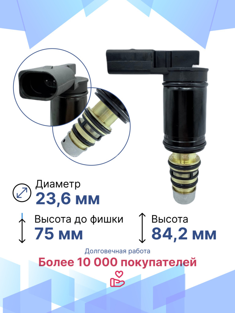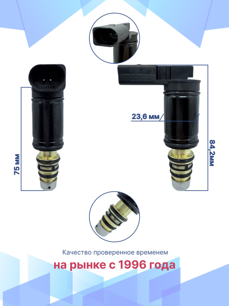 Электромагнитный клапан для Volkswagen, Audi, Skoda, Seat – важный элемент системы климат-контроля автомобиля, который в большинстве автомобилей современного производства устанавливается вместо электромагнитной муфты. Управляющий клапан кондиционера служит для включения и выключения компрессора. Электромагнитный клапан подходит для различных модификаций Фольксваген, Ауди, Шкода, Сеат, гарантируя точную совместимость и надежность. Данная запчасть не имеет OEM номера, поэтому подбирается по образцу или внешнему виду, а также по фото и размерам клапана. Электромагнитный управляющий клапан компрессора автомобиля возврату и обмену не подлежит, так как является высокотехнологичным изделием и электрооборудованием, которое в случае установки теряет товарный вид. Перед отправкой мы тестируем каждый клапан, гарантируем его полную работоспособность. Остались вопросы? Свяжитесь с нами!