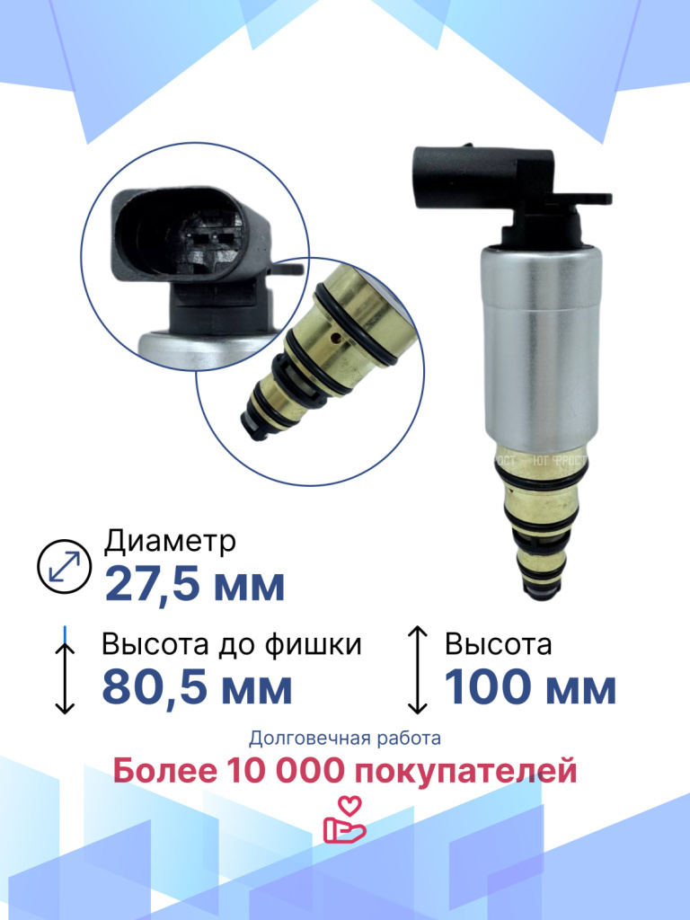 Электромагнитный клапан для Volkswagen Golf, Audi, Seat – важный элемент системы климат-контроля автомобиля, который в большинстве автомобилей современного производства устанавливается вместо электромагнитной муфты. Управляющий клапан кондиционера служит для включения и выключения компрессора. Электромагнитный клапан подходит для различных модификаций Фольксваген Гольф, Ауди, Сеат, гарантируя точную совместимость и надежность. Данная запчасть не имеет OEM номера, поэтому подбирается по образцу или внешнему виду, а также по фото и размерам клапана. Электромагнитный управляющий клапан компрессора автомобиля возврату и обмену не подлежит, так как является высокотехнологичным изделием и электрооборудованием, которое в случае установки теряет товарный вид. Перед отправкой мы тестируем каждый клапан, гарантируем его полную работоспособность. Остались вопросы? Свяжитесь с нами!