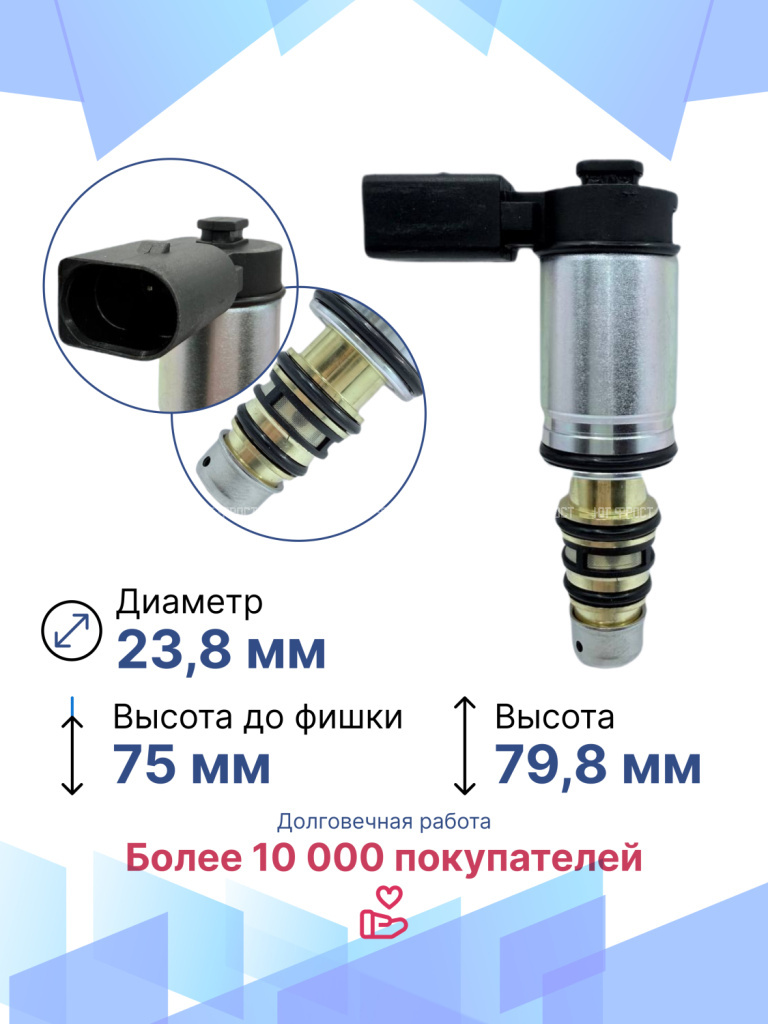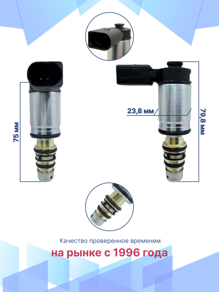 Электромагнитный клапан для Volkswagen, Skoda – важный элемент системы климат-контроля автомобиля, который в большинстве автомобилей современного производства устанавливается вместо электромагнитной муфты. Управляющий клапан кондиционера служит для включения и выключения компрессора. Электромагнитный клапан подходит для различных модификаций Фольксваген, Шкода, гарантируя точную совместимость и надежность. Данная запчасть не имеет OEM номера, поэтому подбирается по образцу или внешнему виду, а также по фото и размерам клапана. Электромагнитный управляющий клапан компрессора автомобиля возврату и обмену не подлежит, т.к. является высокотехнологичным изделием и электрооборудованием, которое в случае установки теряет товарный вид. Перед отправкой мы тестируем каждый клапан, гарантируем его полную работоспособность. Остались вопросы? Свяжитесь с нами!