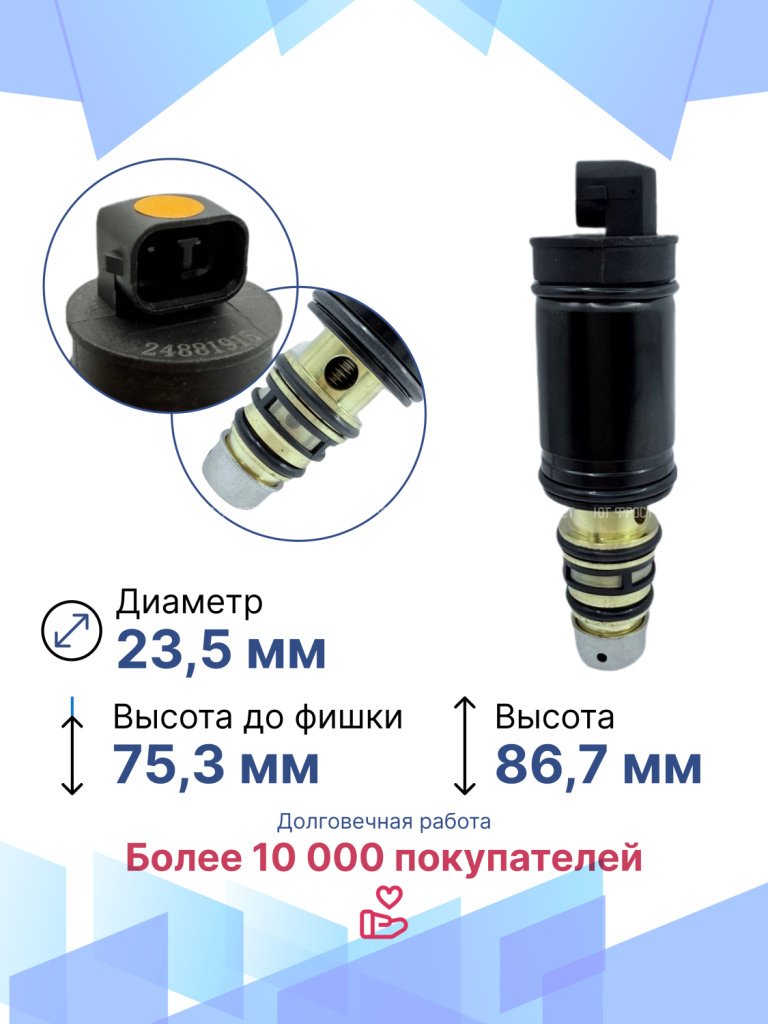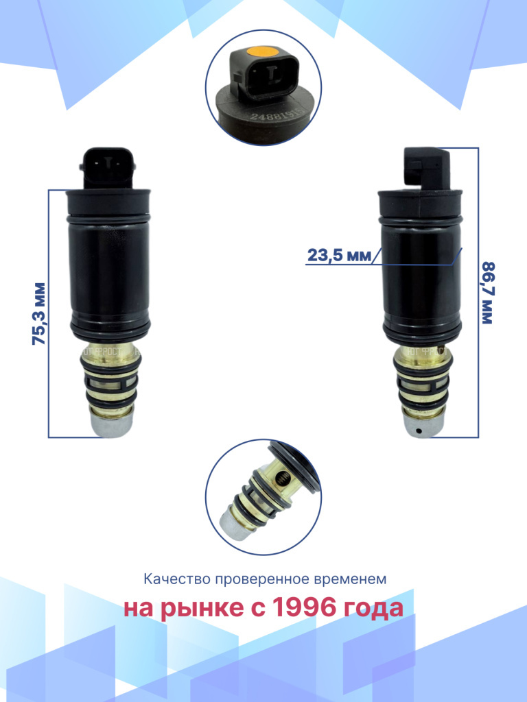 Электромагнитный клапан для Mercedes-Benz – важный элемент системы климат-контроля автомобиля, который в большинстве автомобилей современного производства устанавливается вместо электромагнитной муфты. Управляющий клапан кондиционера служит для включения и выключения компрессора. Электромагнитный клапан подходит для различных модификаций Мерседес-Бенц, гарантируя точную совместимость и надежность. Данная запчасть не имеет OEM номера, поэтому подбирается по образцу или внешнему виду, а также по фото и размерам клапана. Электромагнитный управляющий клапан компрессора автомобиля возврату и обмену не подлежит, т.к. является высокотехнологичным изделием и электрооборудованием, которое в случае установки теряет товарный вид. Перед отправкой мы тестируем каждый клапан, гарантируем его полную работоспособность. Остались вопросы? Свяжитесь с нами!