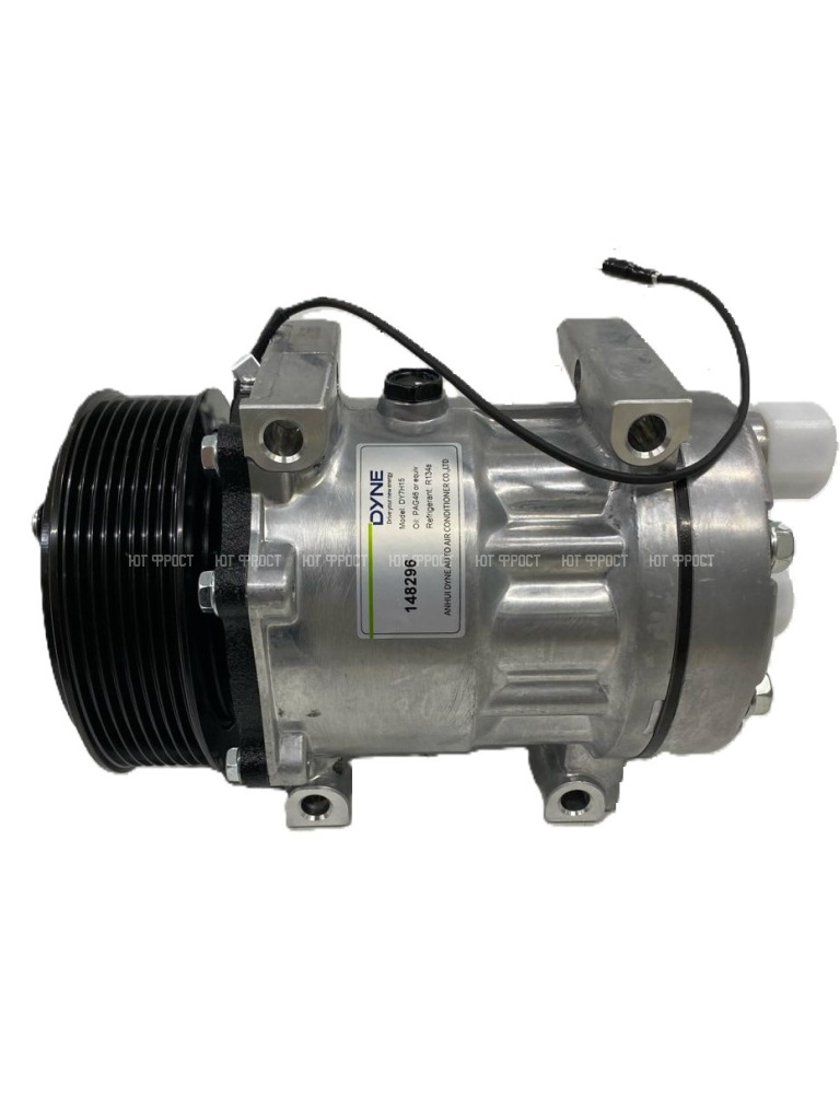 Компрессор кондиционера Dyne 7H15 PV8 12V (выходы горизонтальные, сквозное крепление)
