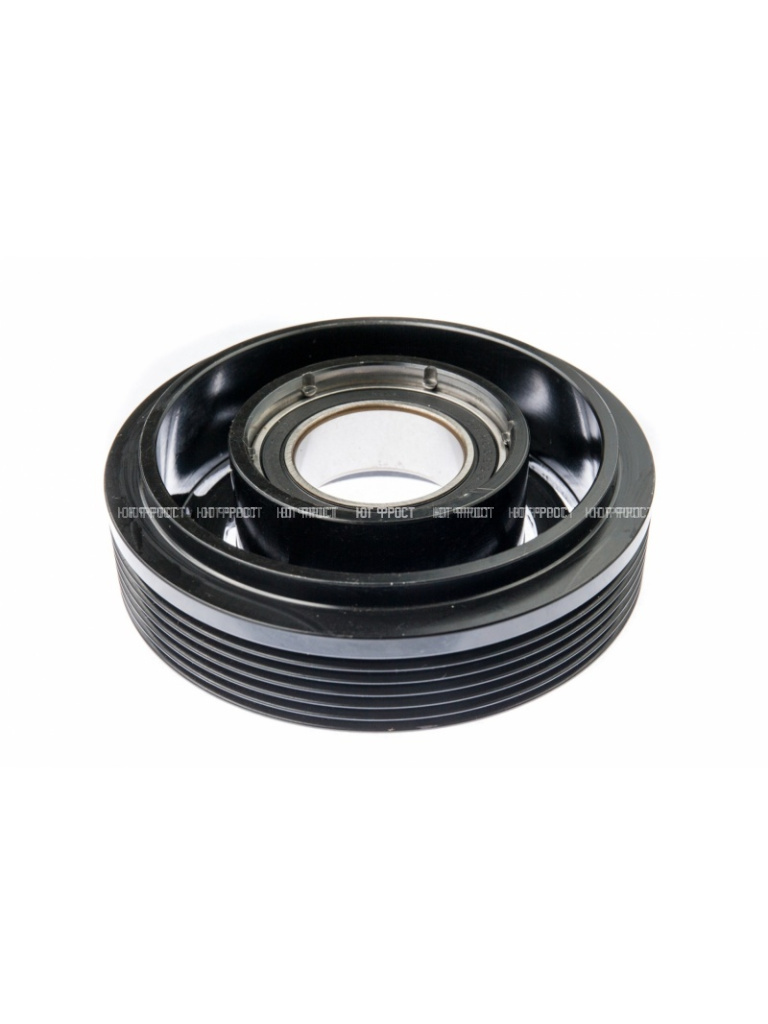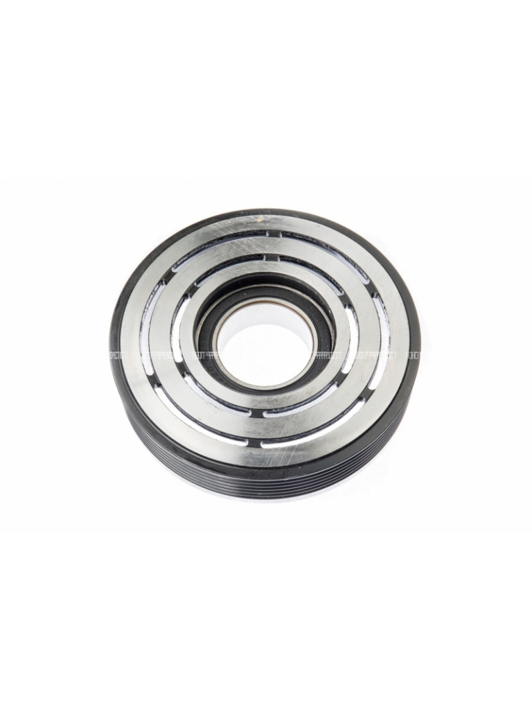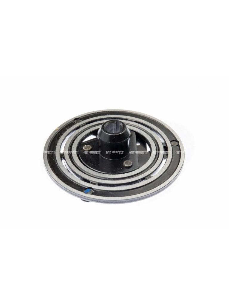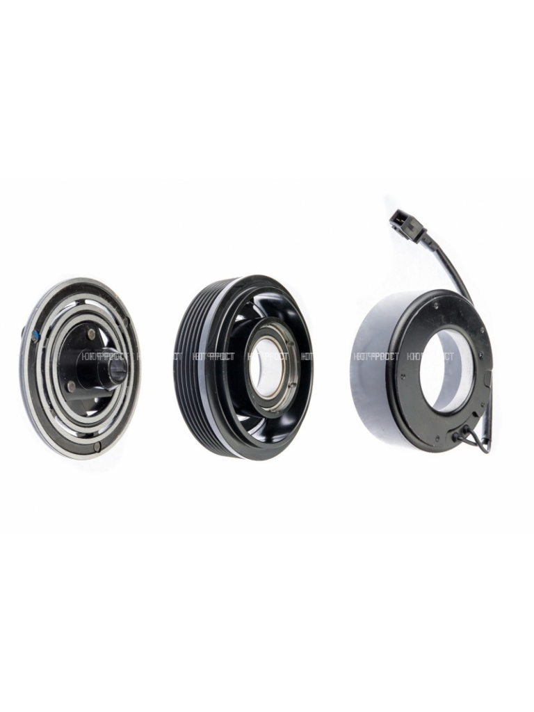 Муфта электромагнитная это узел, который устанавливается в передней части компрессора и состоит из электромагнитной катушки, шкива и прижимной пластины. Когда на катушку подается питание, она создает магнитное поле, которое притягивает прижимную пластину к шкиву, приводя в движение вал компрессора. В результате чего на вал передается крутящий момент и компрессор начинает нагнетать хладогент.