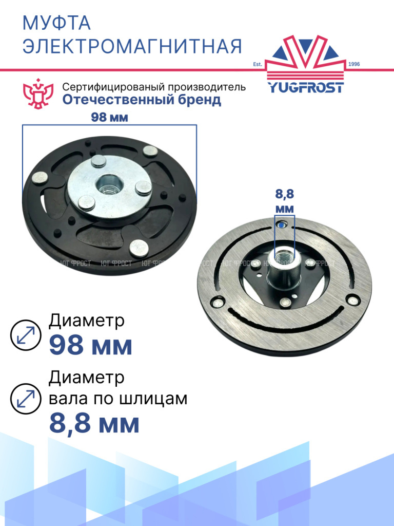 Страна производительТайваньПроизводительYUGFROSTТип ремня приводаПоликлиновой / PV6Напряжение, V12Внешний диаметр подшипника, мм35Внутренний диаметр подшипника, мм52Толщина подшипника, мм20Диаметр муфты, мм115Внешний диаметр катушки, мм97Внутренний диаметр посадочного места катушки, мм40Внешний диаметр прижимной пластины, мм98Диаметр муфты (по ремню), мм111Высота катушки, мм22Высота посадочного места, мм21Диаметр вала по шлицам, мм8.8Кол-во шлицовРезьбаГабариты