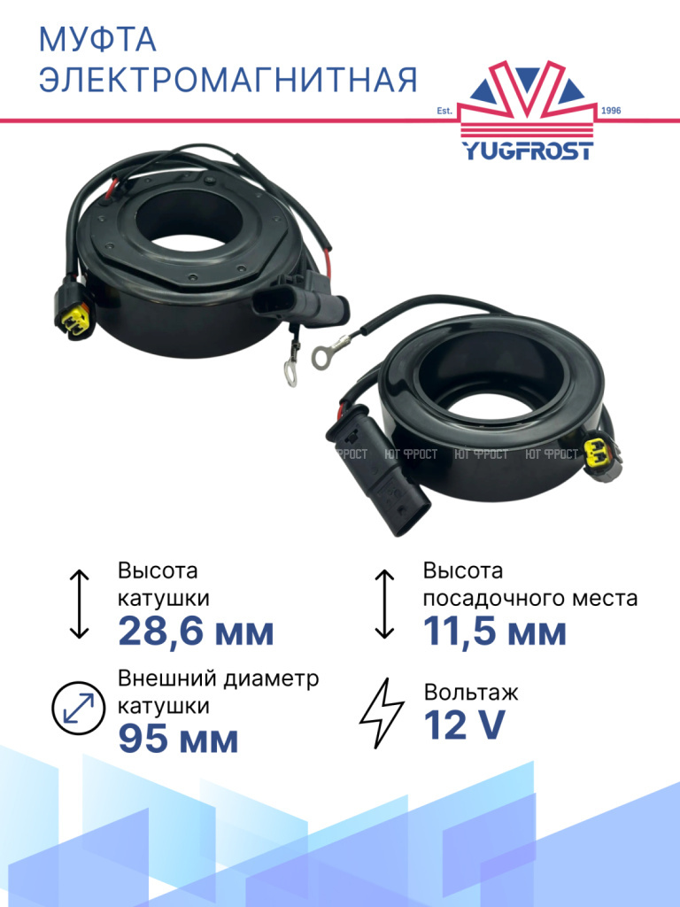 Страна производительТайваньПроизводительYUGFROSTТип ремня приводаПоликлиновой / PV6Напряжение, V12Внешний диаметр подшипника, мм52Внутренний диаметр подшипника, мм35Толщина подшипника, мм20Диаметр муфты, мм115Внешний диаметр катушки, мм95Внутренний диаметр посадочного места катушки, мм45Внешний диаметр прижимной пластины, мм102Диаметр муфты (по ремню), мм111Высота катушки, мм28.6Высота посадочного места, мм11.5Диаметр вала по шлицам, мм13Количество шлицов24Габариты