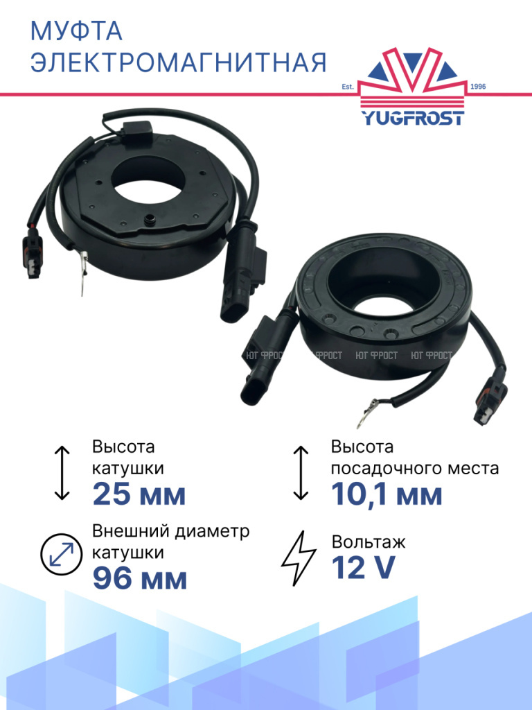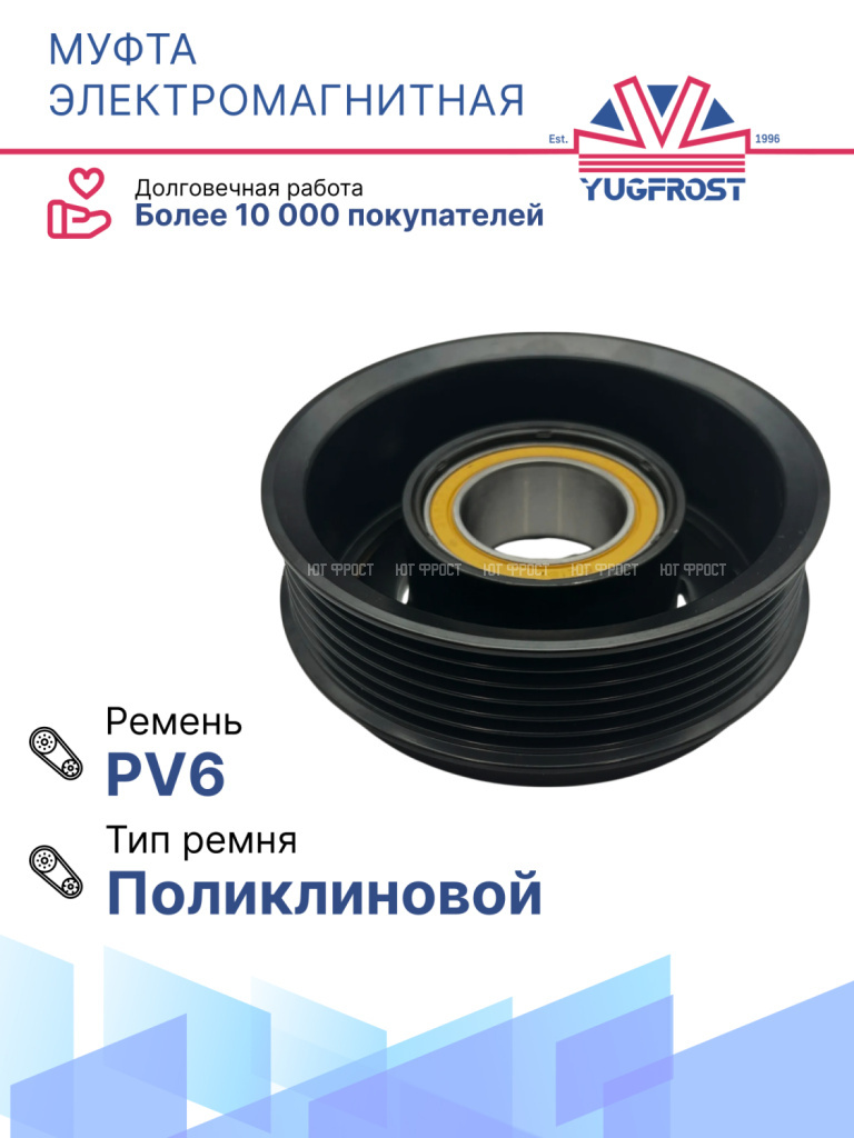 Страна производительТайваньПроизводительYUGFROSTТип ремня приводаПоликлиновой / PV6Напряжение, V12Внешний диаметр подшипника, мм52Внутренний диаметр подшипника, мм35Толщина подшипника, мм20Диаметр муфты, мм114Внешний диаметр катушки, мм96Внутренний диаметр посадочного места катушки, мм40Внешний диаметр прижимной пластины, мм102Диаметр муфты (по ремню), мм110Высота катушки, мм25Высота посадочного места, мм10.1Диаметр вала по шлицам, мм13.5Количество шлицов25Габариты