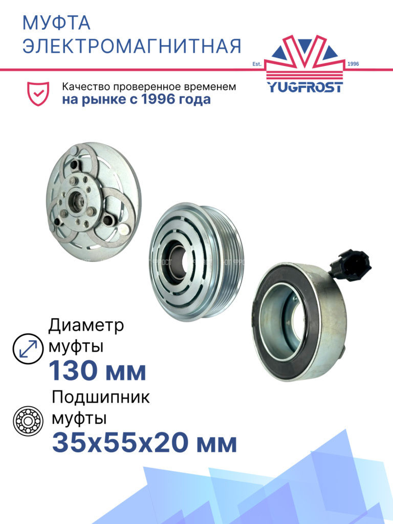 Муфта электромагнитная это узел, который устанавливается в передней части компрессора и состоит из электромагнитной катушки, шкива и прижимной пластины. Когда на катушку подается питание, она создает магнитное поле, которое притягивает прижимную пластину к шкиву, приводя в движение вал компрессора. В результате чего на вал передается крутящий момент и компрессор начинает нагнетать хладогент.