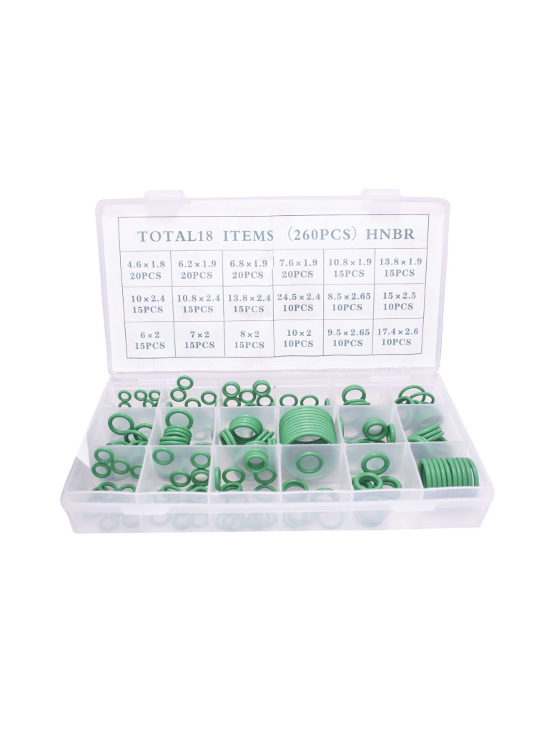 Набор уплотнительных колец ACC-180 (18 видов, 260шт) зеленые