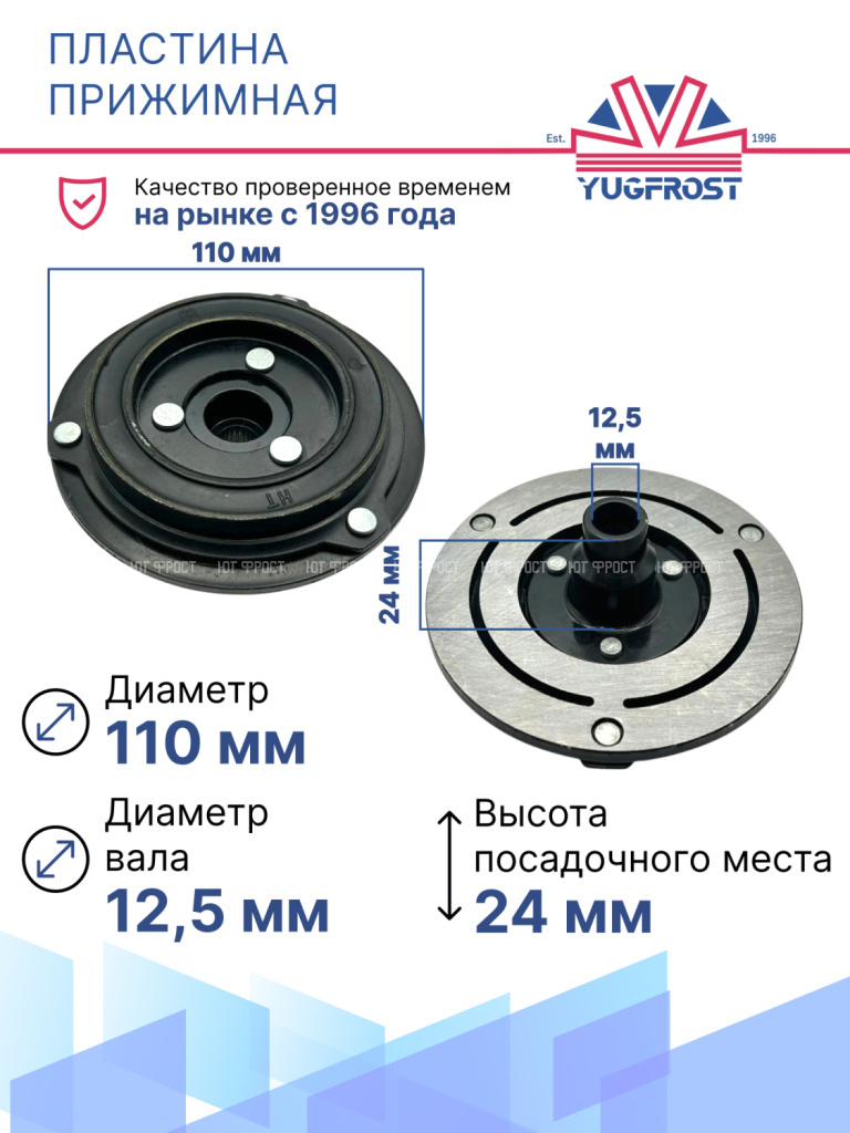 Прижимные пластины, также известные как пластины сцепления, располагаются в механизме электромагнитного сцепления компрессора. Обеспечивают эффективное соединение между шкивом и компрессором при включении сцепления. Признаки поломки проявляются в характерном шуме, запахе гари и исправляются путем замены пластины.