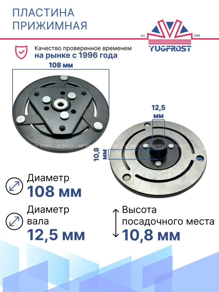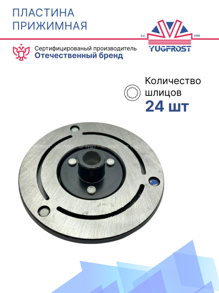 Прижимные пластины, также известные как пластины сцепления, располагаются в механизме электромагнитного сцепления компрессора. Обеспечивают эффективное соединение между шкивом и компрессором при включении сцепления. Признаки поломки проявляются в характерном шуме, запахе гари и исправляются путем замены пластины.