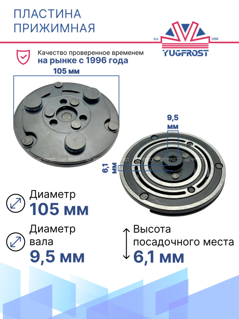 Прижимные пластины, также известные как пластины сцепления, располагаются в механизме электромагнитного сцепления компрессора. Обеспечивают эффективное соединение между шкивом и компрессором при включении сцепления. Признаки поломки проявляются в характерном шуме, запахе гари и исправляются путем замены пластины.