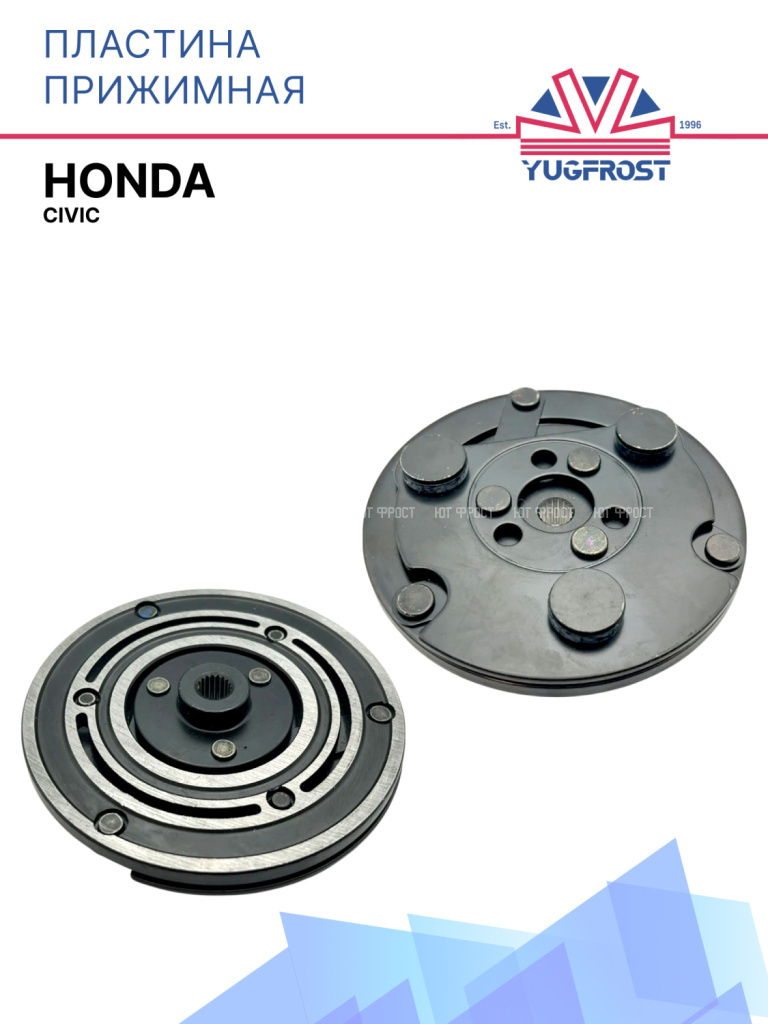 Прижимные пластины подходят для автомобилей Honda Civic. Изготовлены из прочного металла, устойчивого к износу и температурным перепадам. Наши прижимные пластины для Хонда Цивик просты в установке, подходят для замены при ремонте или поломке компрессора. Удостовериться, что деталь подходит вашей машине, можно на нашем сайте во вкладке Применимость. Остались вопросы? Свяжитесь с нами!